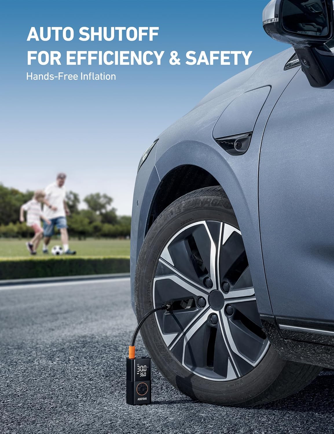 AstroAI L7 Tire Inflator Portable Air Compressor Cordless Mini Bike Pump with Digital Dual Values Display, 150 PSI Car Tires Air Pump with LED Lights&Pressure Gauge for Auto, Motorcycles, Bikes, Balls