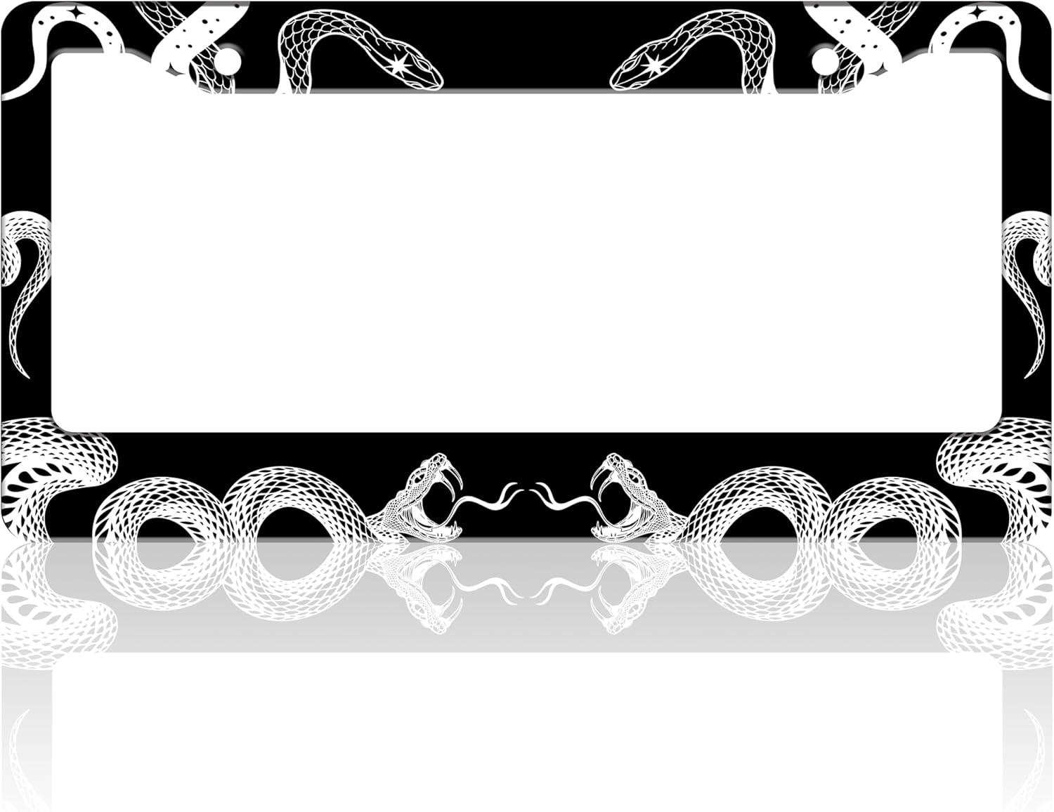 Black and White Snake Crawling License Plate Frame Gothic License Plate Holder for Front or Rear Car Tags Stainless Steel Funny Car Decoration with Screws 6.3 X 12.2 in
