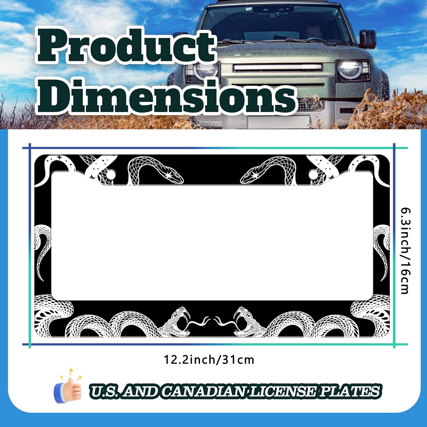 - 6.3 X 12.2 INCHES: Suitable for most standard size U.S. and Canadian license plates, can be applied to front or rear license plates, universal style. Add points to the beauty of your car!