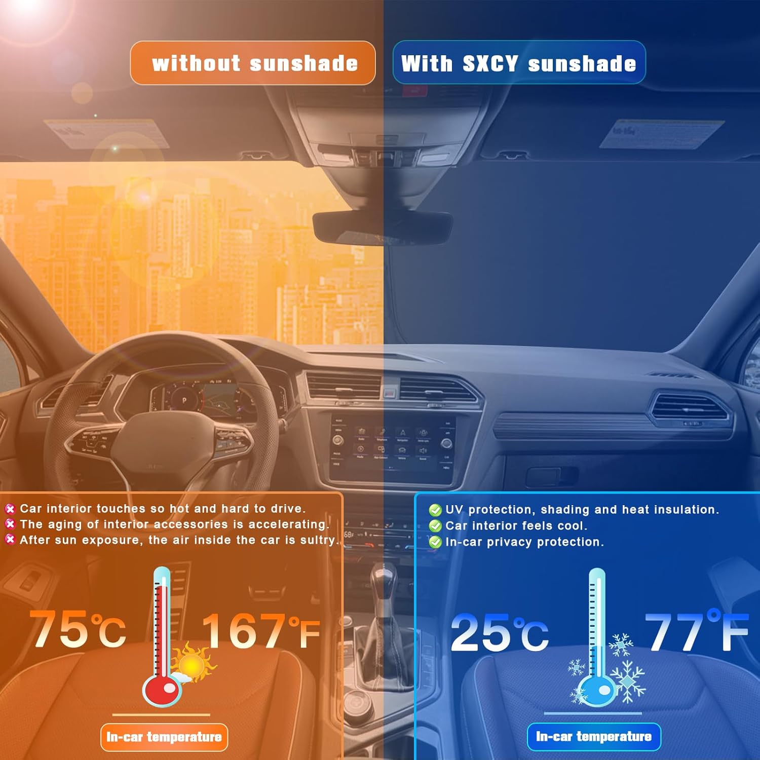 SXCY Foldable Sun Shield for 2018-2024 Volkswagen Tiguan Sunshade - Blocks UV Rays