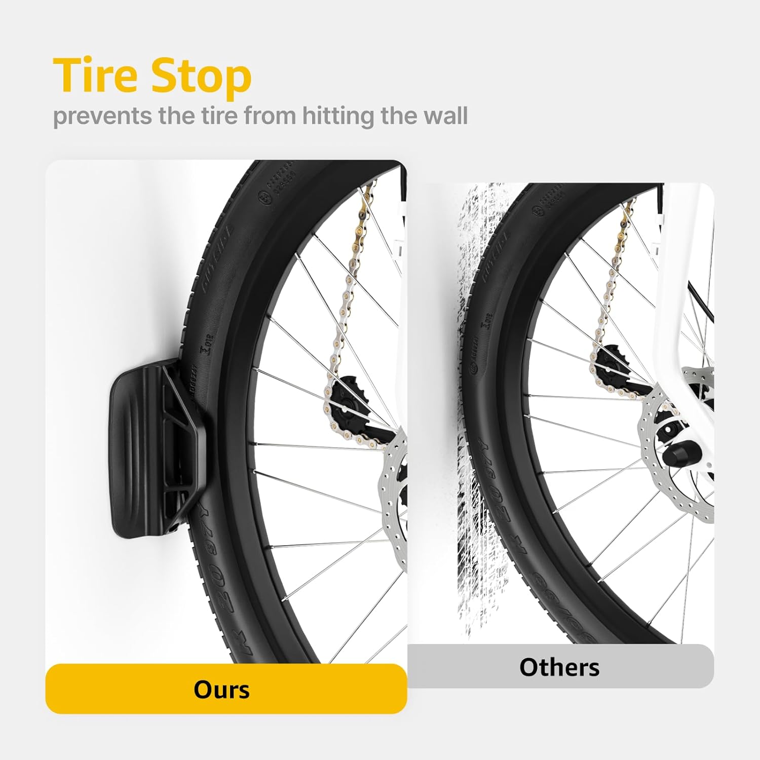 - 【UPGRADED STRENGTH & SAFETY】 monTEK bike wall mount, made from heavy-duty steel, can handle weights up to 35 kg / 77 lbs. The wall bike rack features a rubber coating to mitigate pressure on wheels, rims, and spokes while protecting your bicycle from unexpected scratches. The wall-mounted tire stop not only secures your bike but also safeguards your wall from visible scratches. Vertical bike wall mount - The angled hook allows for easy mounting and dismounting.