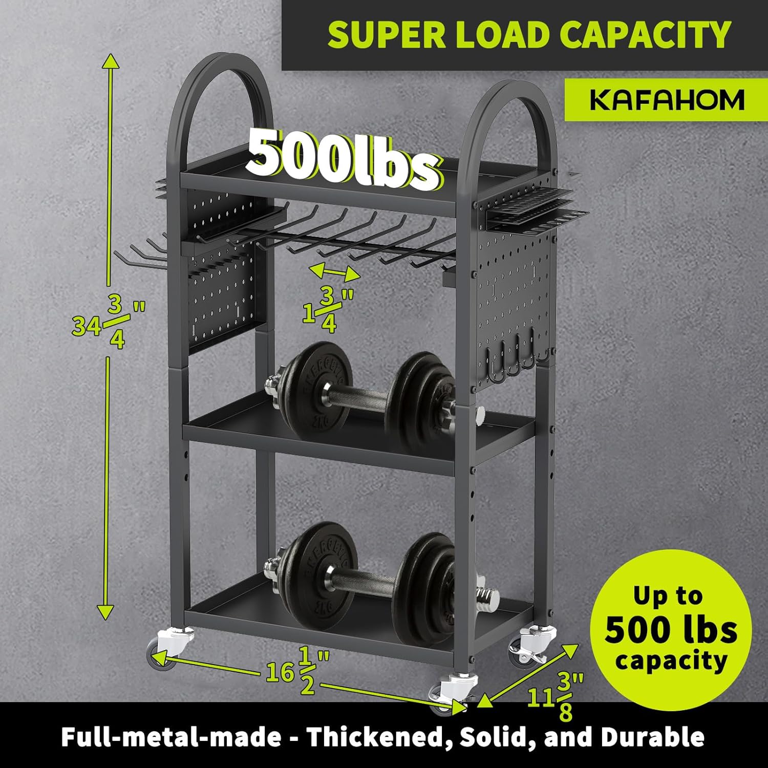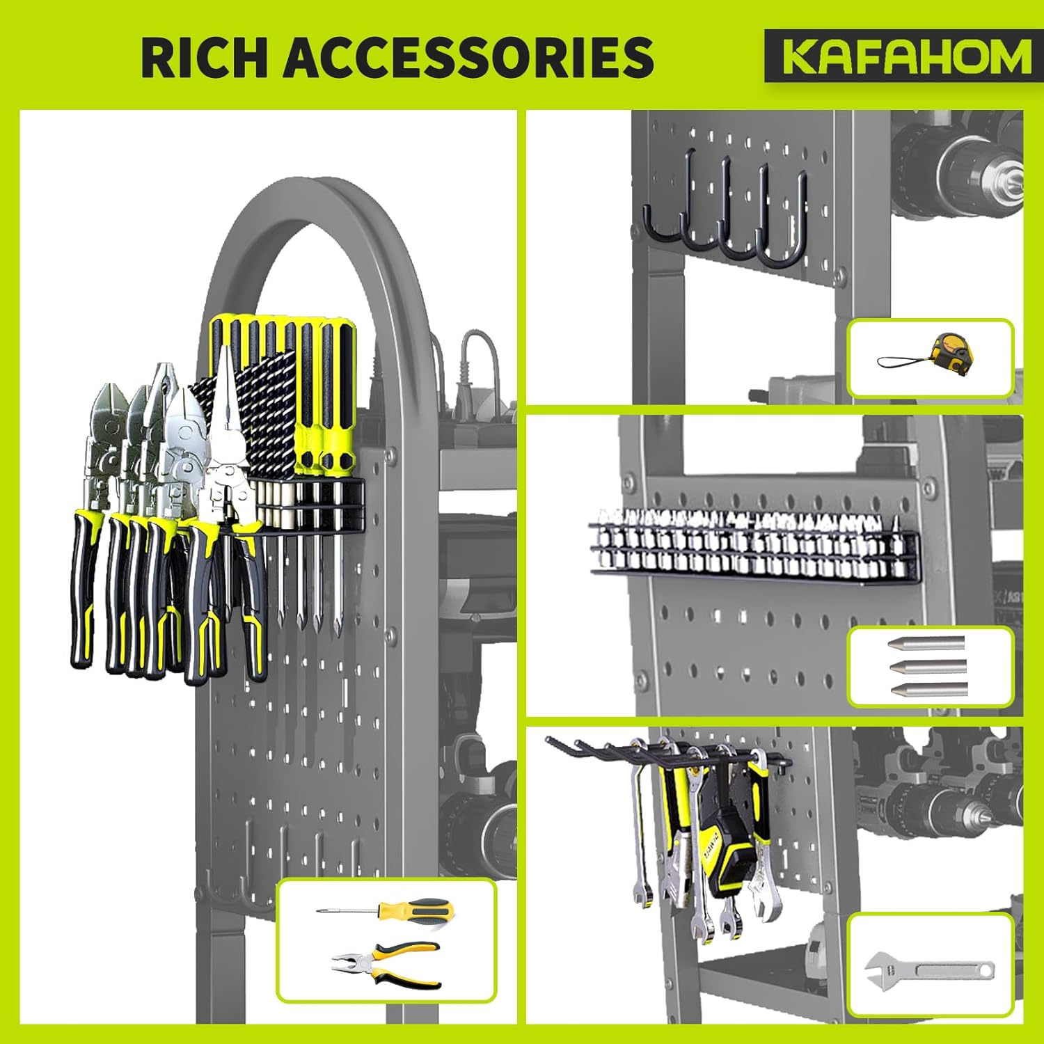 - MOVABLE AND FLEXIBLE: You read that right - It's a 4 Layer Heavy Duty Metal Power Tool Storage Rack that can move anywhere! The KAFAHOM Power Tool Organizer for Tool Storage 's four 360° wheels can be locked and moved around freely to meet your needs. No longer only for daily indoor use, the rolling tool cart is now perfect for various industrial settings, including outdoor settings like backyard work fields, garage workshops, or professional scenes.