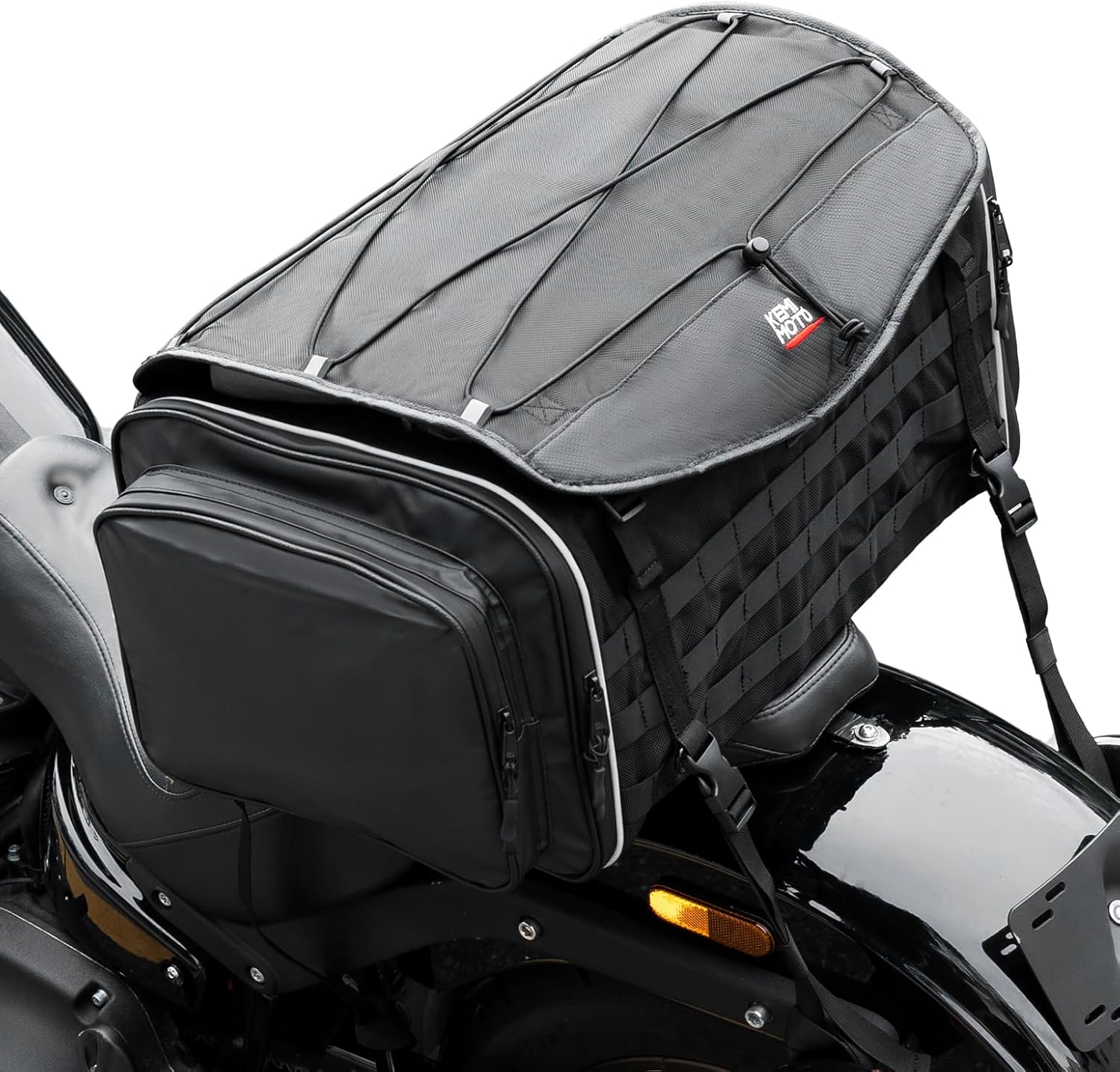 KEMIMOTO Motorcycle Tail Bag, Dual Use Motorcycle Rear Seat Bag with Waterproof Rain Cover, 50L Expandable Motorbike Helmet Bag Luggage Storage Backpack