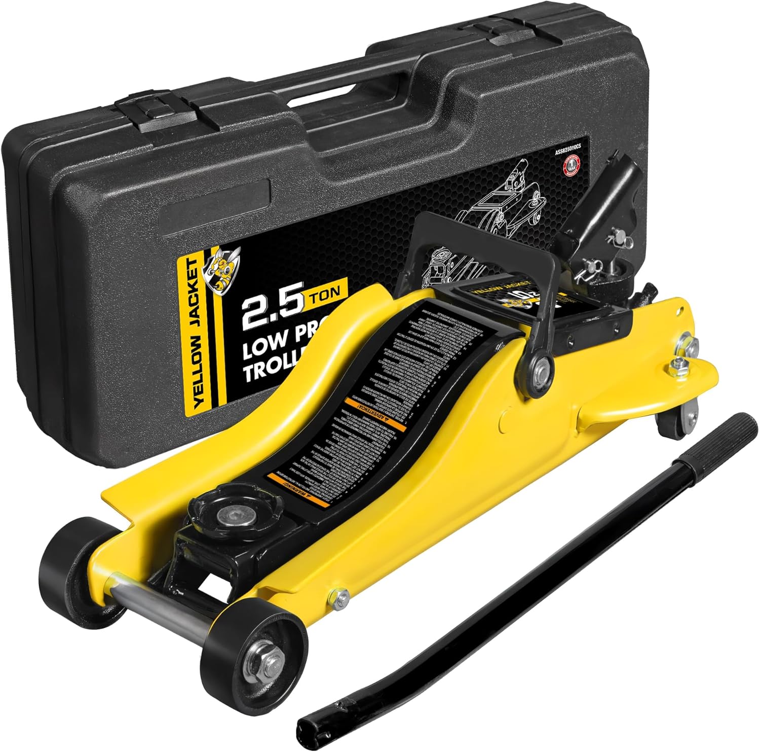 YELLOW JACKET 2.5 Ton Trolley Jack with Carrying Case Hydraulic Low Profile Floor Jack for Cars Lift with Single Piston Lift Pump, 5500 lb Capacity…