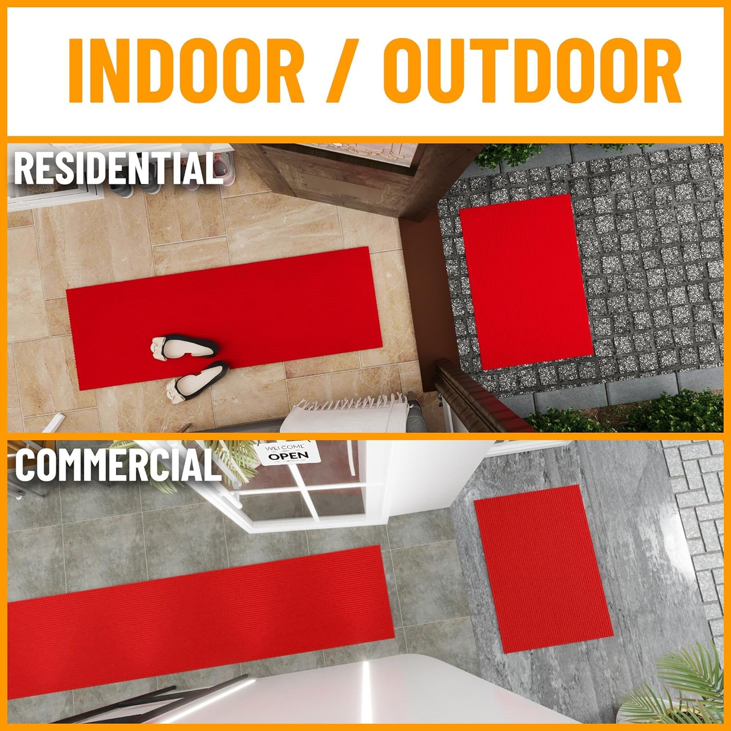 Ottomanson 2'7" x 7' Hallway Runner with Scraper Pile Extra Durable Non-Slip Rug Mat for Indoor & Outdoor Use - Ideal for Kitchen, Entryway, Patio & Garage - High-Traffic Carpet, Red