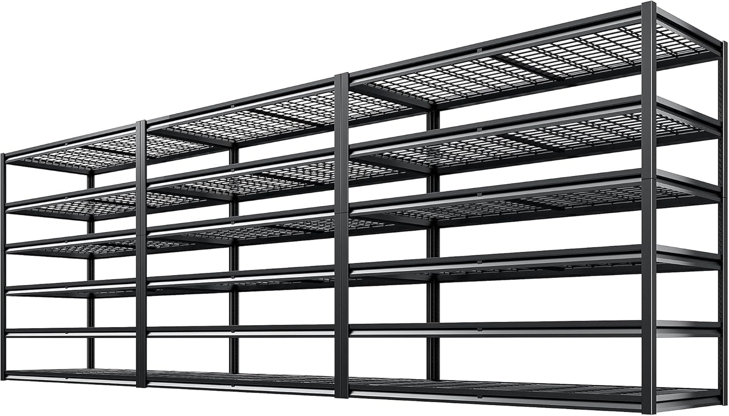 - 【3500LBS High Capacity Storage Shelves Heavy Duty】The combination of thickened wire mesh and reinforced double-layer columns delivers an ultra-high load capacity of 3,500 lbs. Rest assured when storing heavy items like toolboxes, vehicle parts, files, dumbbells, or office supplies. These heavy-duty storage shelves support up to ten 27-gallon totes per tier