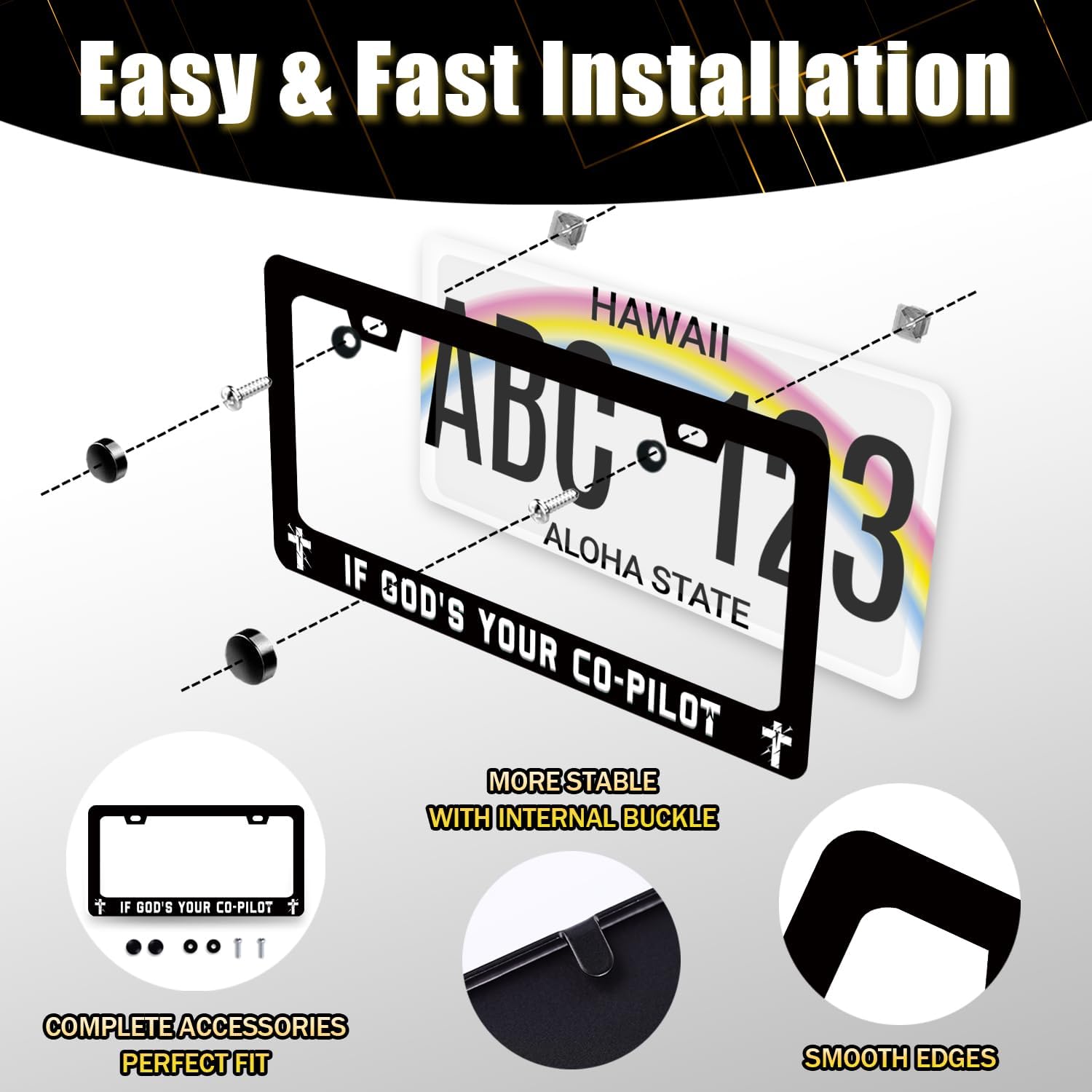 - 【Easy to install】This license plate Frame with holes, including Accessories: screws, nuts and washers. Easy to install.you don’t need to buy any other hardware or fasteners. Anti-theft caps are also included