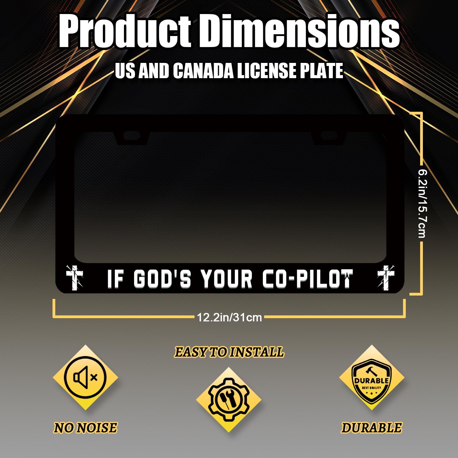 - 【Perfect Size】: The size of the license plate frame is: 12.3" x 6.3" , it fits all standard size US and Canada vehicle license plates.With compatibility, the stylish design frame fits perfectly on your car license plate.