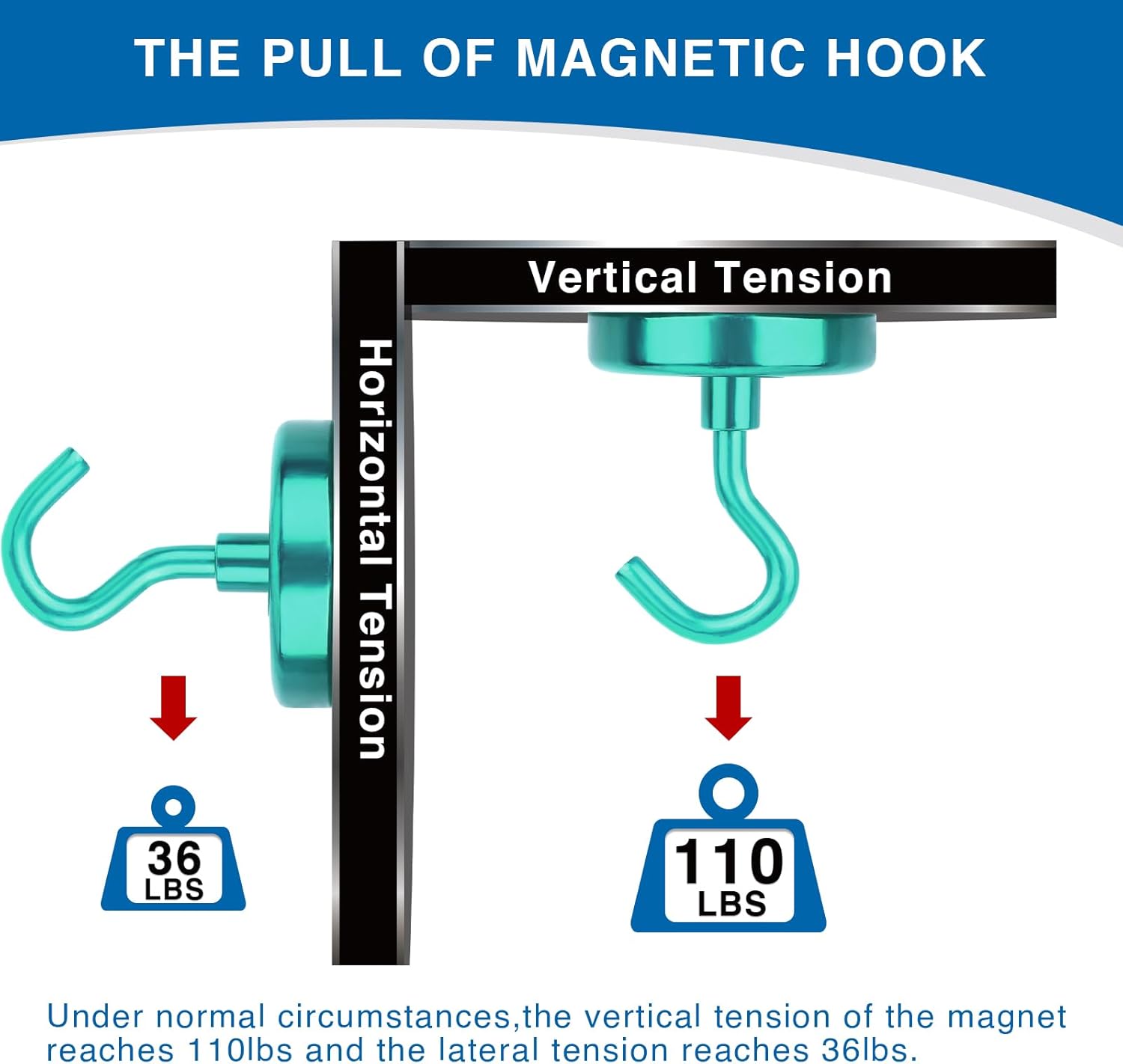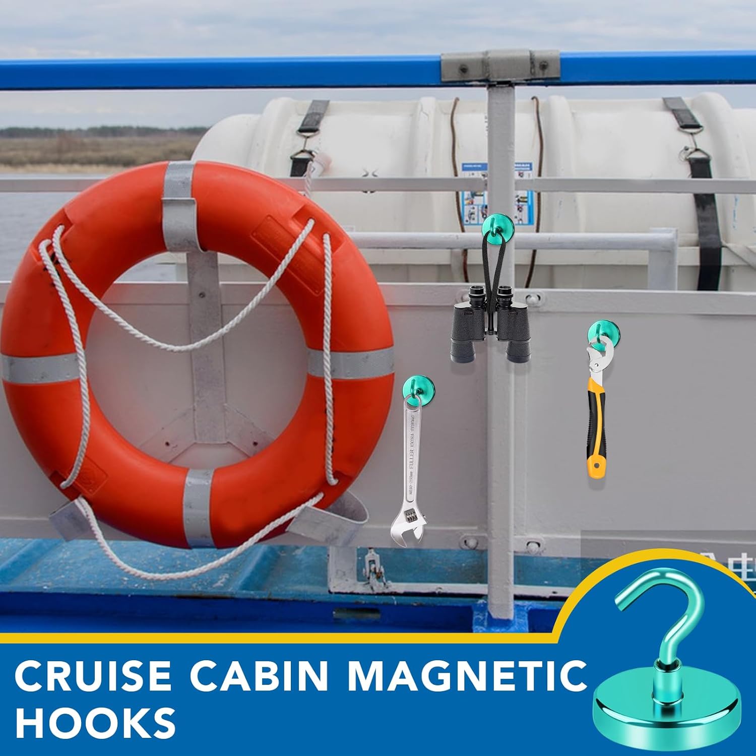 LOVIMAG Cruise Ship Essentials, 110Lbs Cruise Door Magnets, Green Magnetic Hooks, Magnetic Hooks Heavy Duty for Hanging Celling, Grill, Refrigerator Kitchen-6 Pack