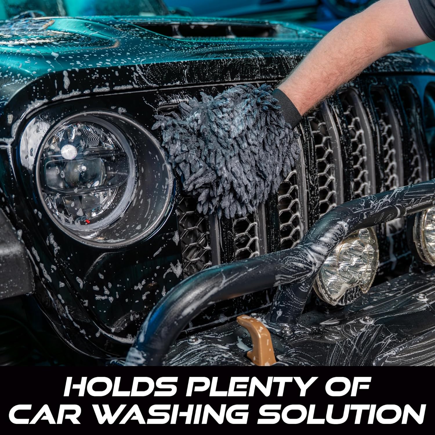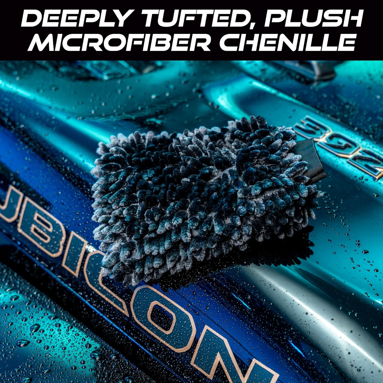 VIKING Car Wash Mitt, Microfiber for Car Cleaning, Premium Chenille, Black, 10 inch x 8 inch, 2 Pack