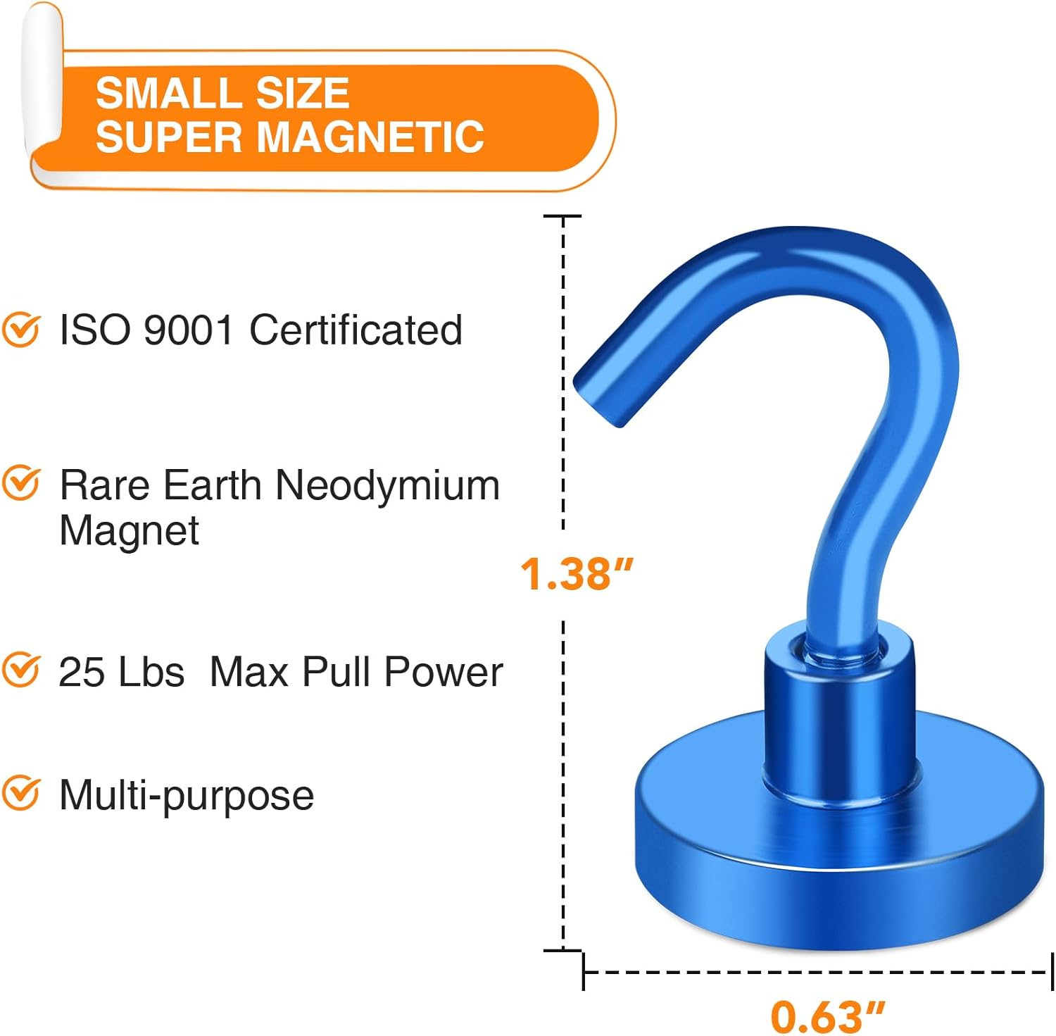 - 【Excellent Layer Coating】- Our metal magnetic hooks come with an excellent triple-layer coating of Ni+Cu+Ni, which greatly reinforces their corrosion resistance. This coating is the best available, providing a shiny and rust-resistant surface that helps prevent chipping or cracking. The coated steel cup also provides protection for the heavy duty magnetic refrigerator hooks. With this excellent layer coating, you can trust that our magnetic hanging hooks are safe to use and will last a long time.