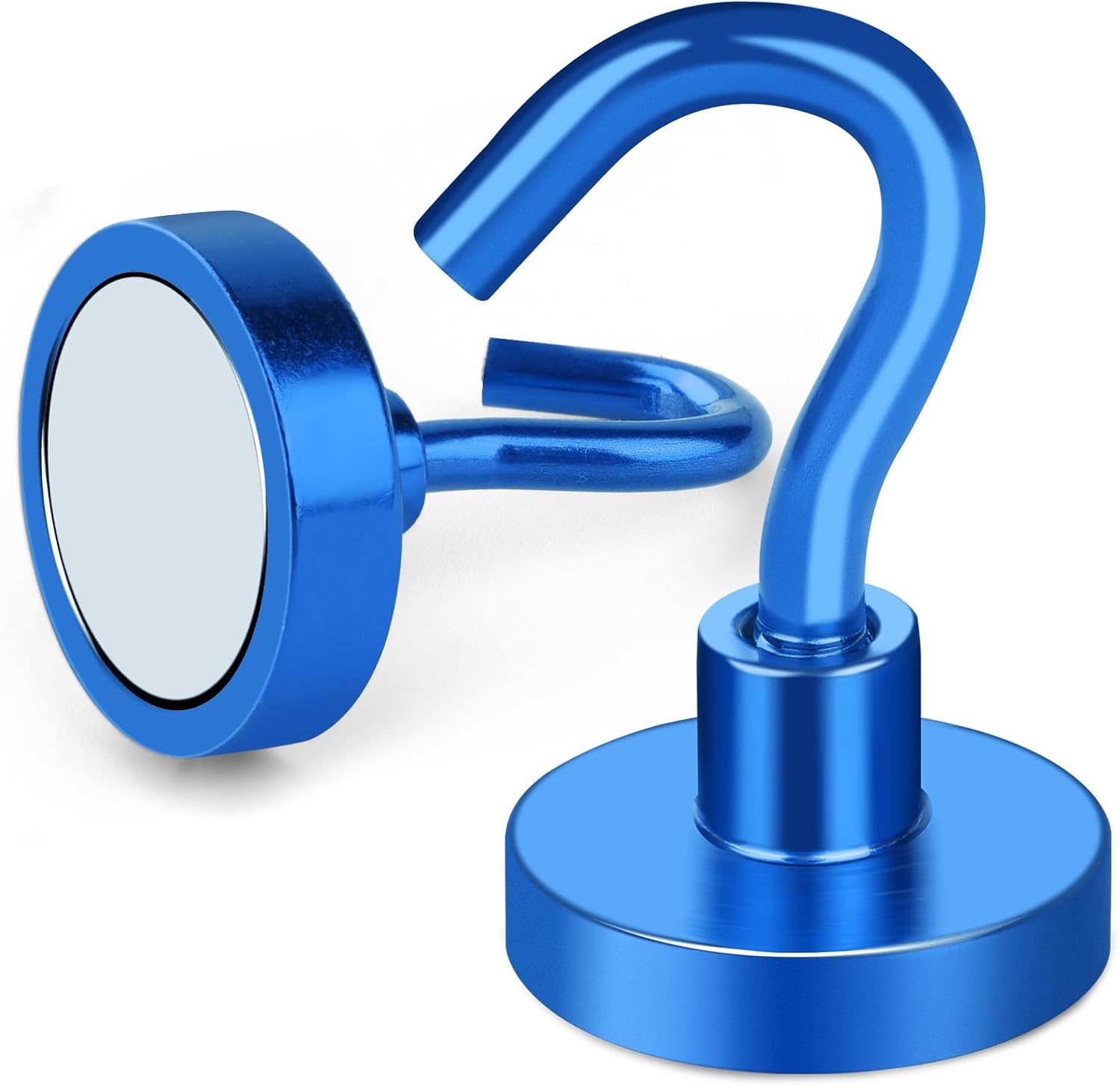 MIKEDE Magnetic Hooks Heavy Duty, 28LB+ Strong Magnets with Hook for Fridge, Neodymium Extra Strength Industrial Hooks for Hanging, Magnetic Hanger for Toolbox, Cruise, Grill(Blue,4 Pack)