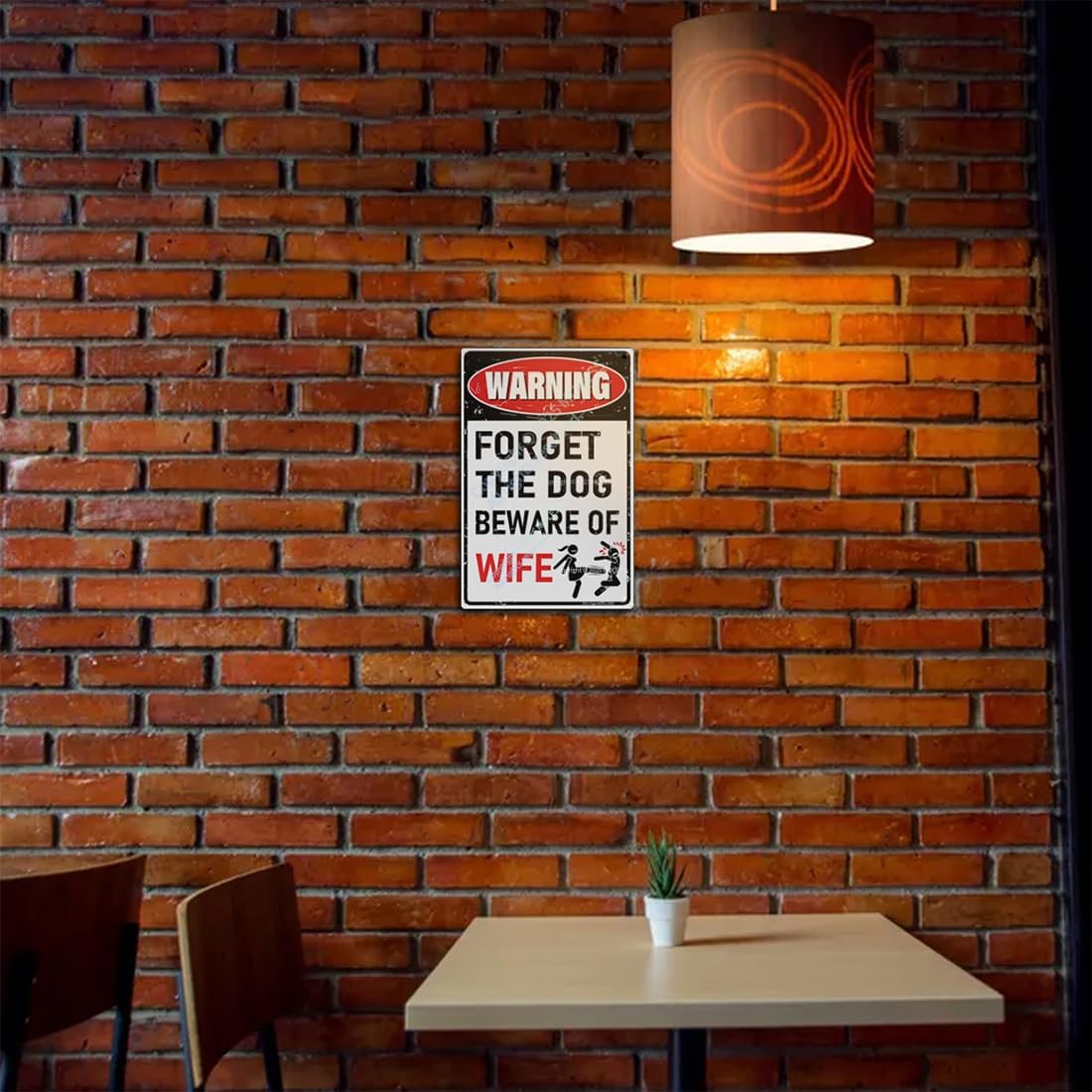 'Forget the Dog – Beware of Wife!' Funny Man Cave Decor for Men | 12x8″ Durable Vintage Metal Man Cave Signs Wall Decorations for Basement/Garage/Mancave, 2360