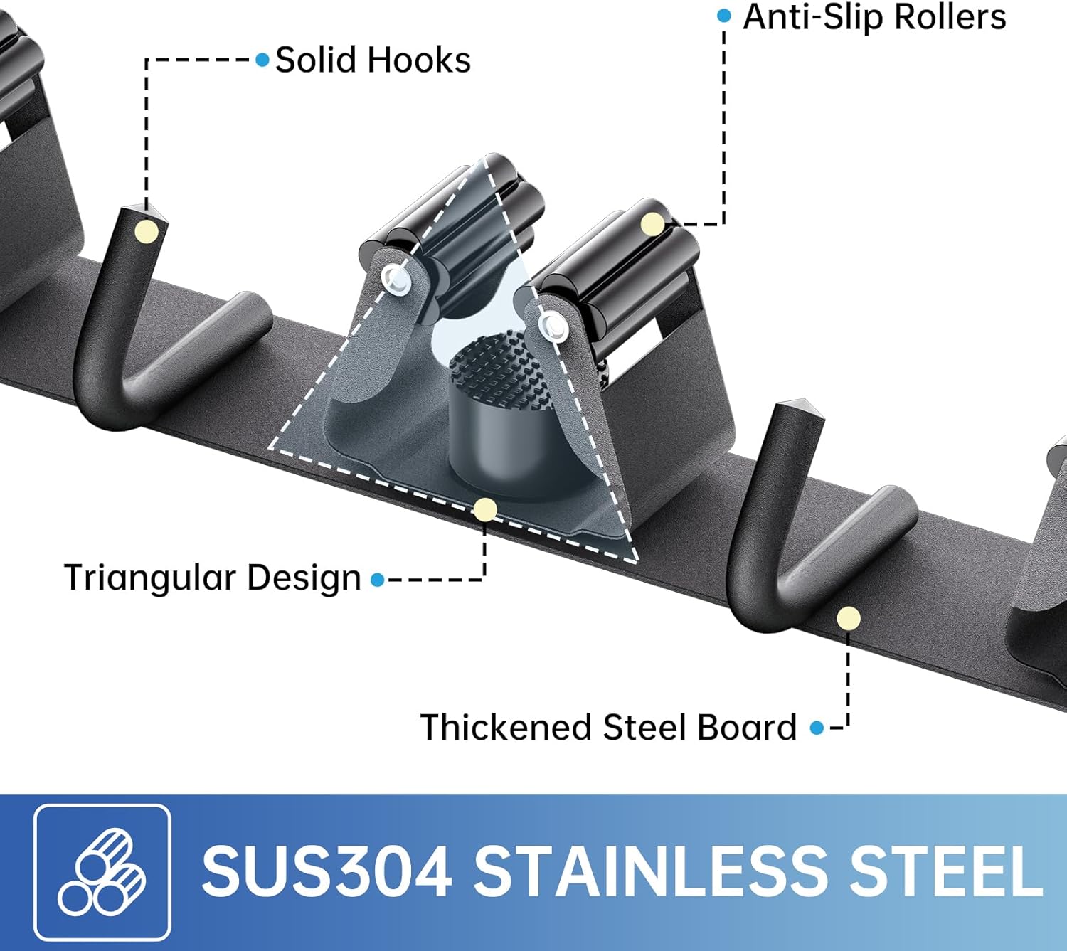 - 🏡【STURDY & BROOM HOLDER】Each broom holder wall mount has 3 racks 4 hooks. Made of sturdy 304 stainless steel, the broom holder is corrosion-resistant, rustproof and waterproof. Compared with the plastic broom rack, it is more stronger and has a longer service life.
