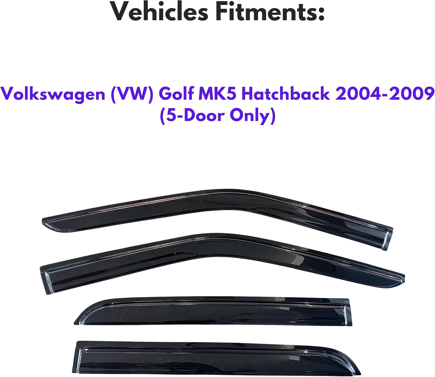 - 【Perfect Fit】KPY window visors rain guards vent deflectors compatible with Volkswagen (VW) Golf MK5 Hatchback 2004 2005 2006 2007 2008 2009 (Mugen Style)