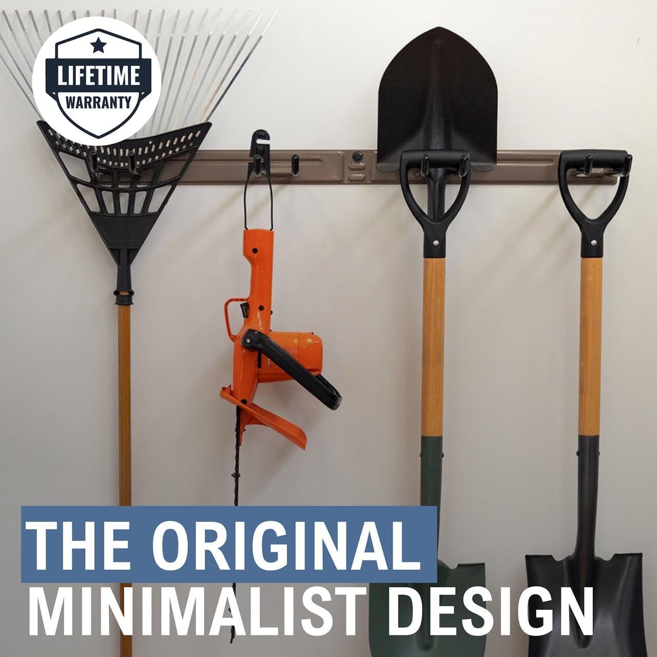 - RECLAIM YOUR GARAGE – Conquer clutter with this garden tool organizer designed for garage storage, sheds, or workshops. Measuring 36" L x 9.5" W x 2.5" H, it features four PVC-coated garage hooks and a 250 lb weight capacity, ideal for storing shovels, brooms, rakes, and power tools. Installs with 3 heavy-duty lag screws directly into 16" wall studs for secure, long-lasting support.