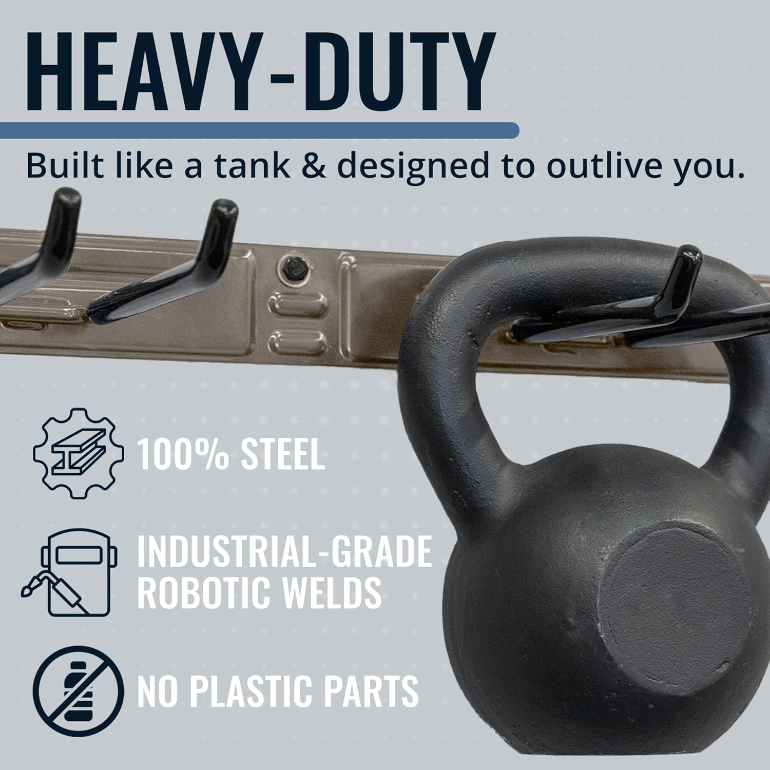 - QUICK & SECURE INSTALLATION – Each garage hook rack includes upgraded hardware with superior tensile strength and a protective electrophoresis coating. Oval mounting holes allow flexibility in stud spacing, and the all-in-one design means no assembly—just mount and get organizing. Ideal for garage organization or home improvement projects.