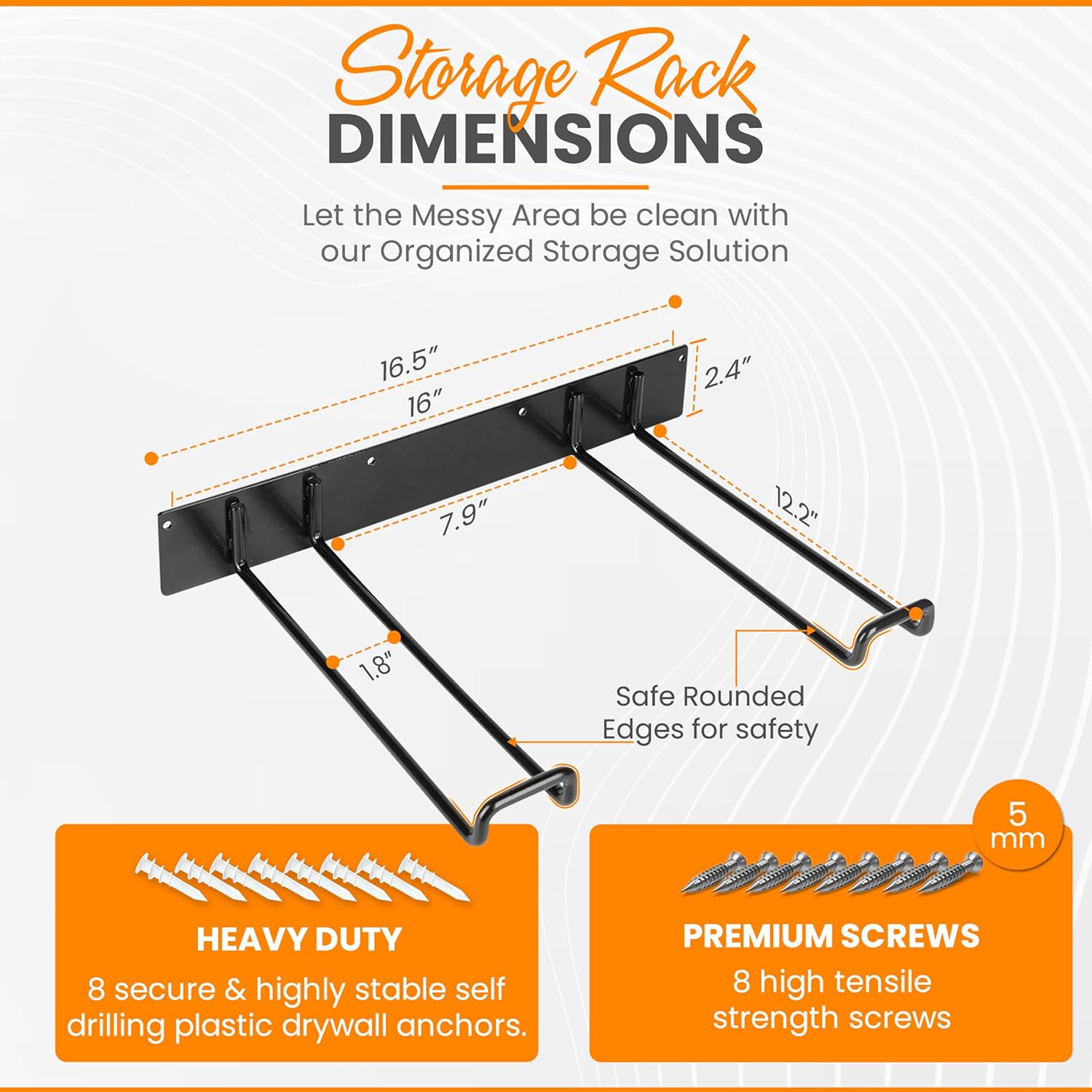 - 【HEAVY DUTY MATERIAL】These storage racks are precisely crafted with premium quality, heavy duty, eco-friendly, industrial, anti-rust, anti-crack, anti-scratch, anti-slip, and durable solid steel size of 8.5mm with powder metal coating, each rack can hold up to 250 lbs of weight. Take advantage of the heavy-duty storage rack and organize your space with full capacity.