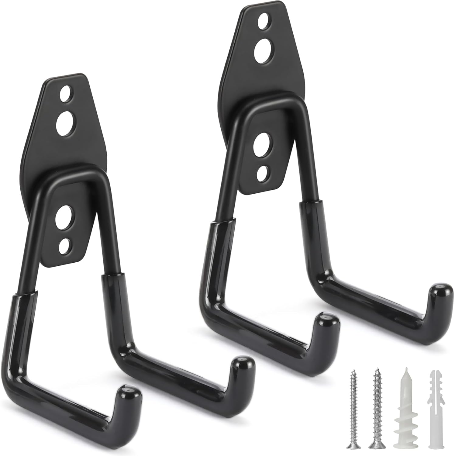 - HIGH QUALITY MATERIALS: Our heavy duty garage hooks(Two 2.75 Inch U hooks) are made from solid steel with anti-rust coating, ensuring durability and long-lasting use. The non-slip PVC sheath provides a secure grip, preventing items from slipping or getting scratched.