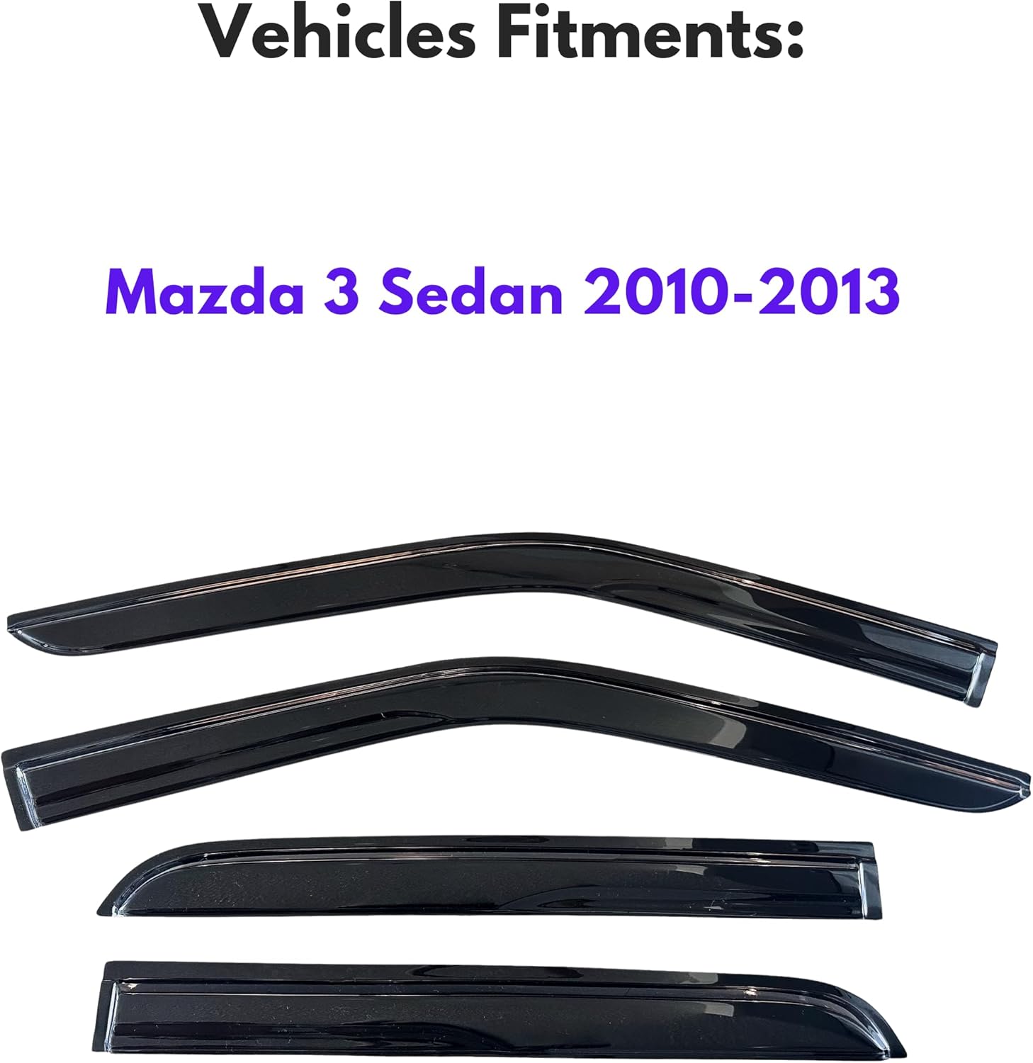 - 【Perfect Fit】KPY window visors rain guards vent deflectors compatible with Mazda 3 Sedan 2010 2011 2012 2013 (Mugen Style)