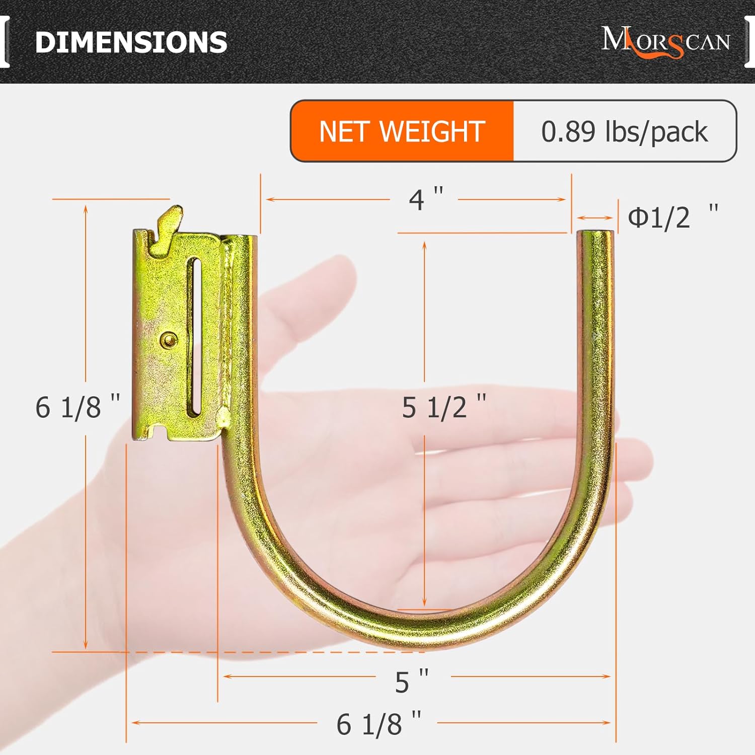- HEAVY DUTY HOOKS - Strong hooks fit for all E Track/X Track trailer tie-down rails or E port single slots. With 4" inner clearance, 500 pound working load limit, 1,400 pound break strength.