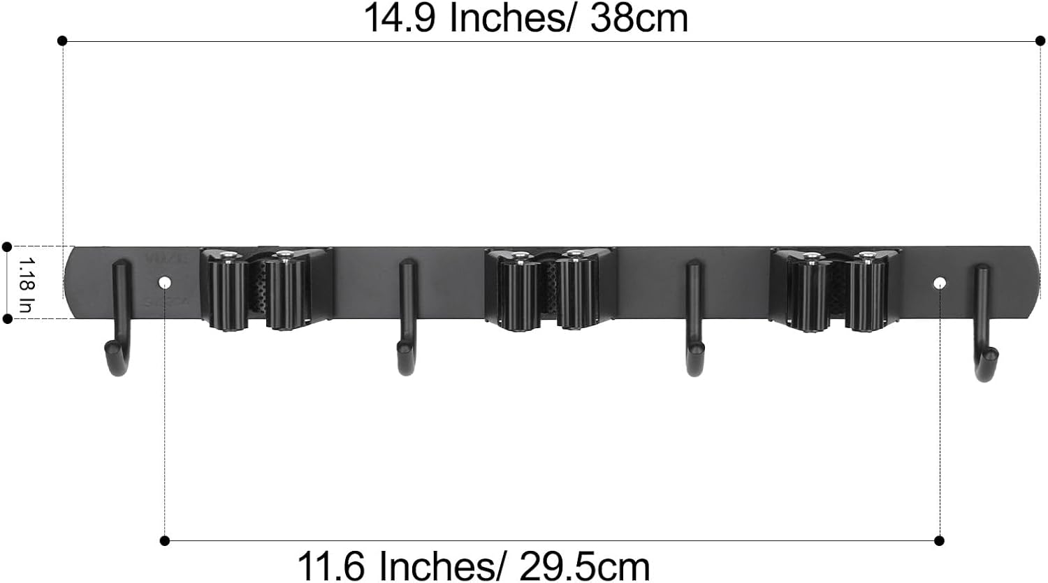 - [Organizing & Saving Space] Keep your garage or laundry room organized and tidy immediately after using this broom and mop organizer wall hanging, it is designed with 3 slots and 4 Hooks/ hangers and can organize your brooms, mops, rakes, garden or garage tools and other accessories, all your tools won't disorderly stacked on the ground or in a corner of your house, save great space.