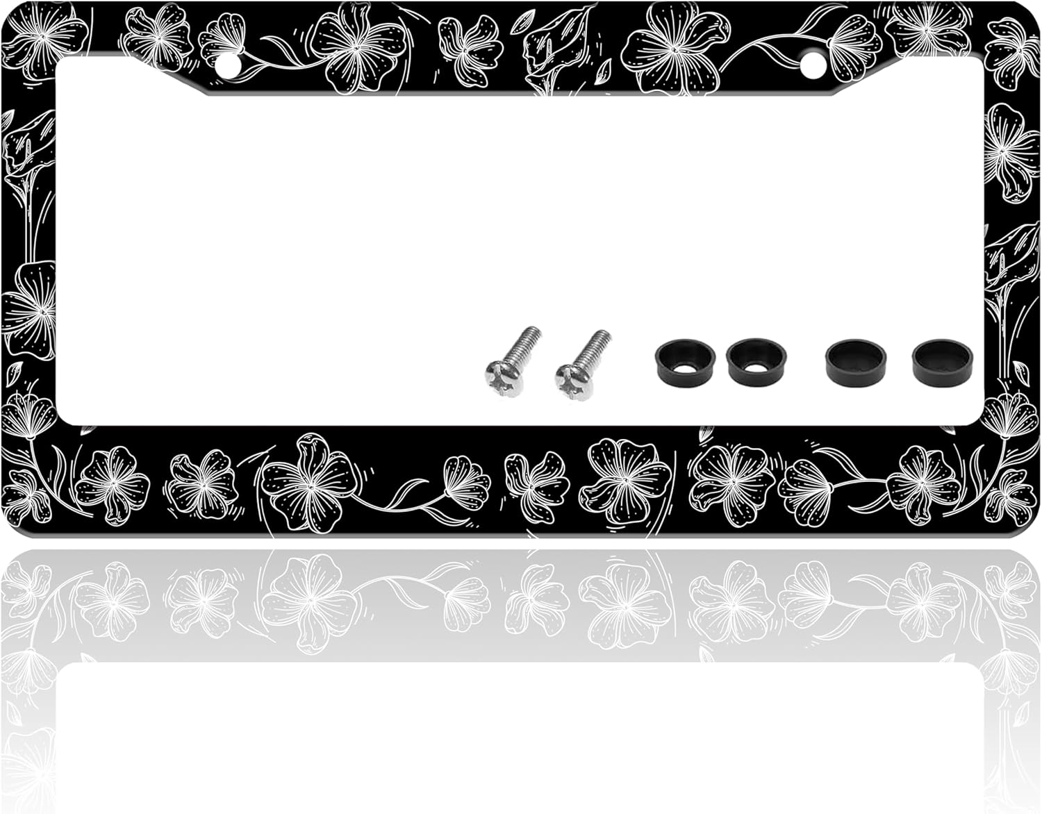 Black and White Line Drawing Flowers License Plate Frame Beautiful Floar License Plate Holder for Front or Rear Car Tags Reusable Stainless Steel Funny Car Decoration with Screws 6.3 X 12.2 in