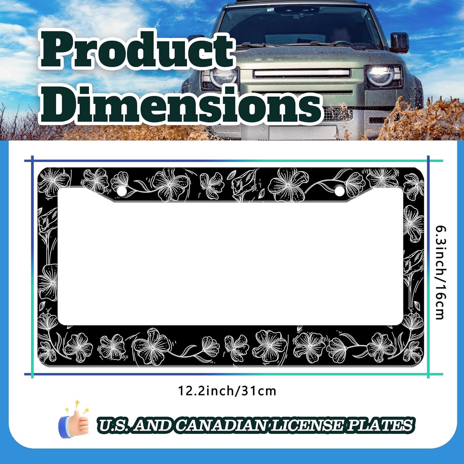 - 6.3 X 12.2 INCHES: Suitable for most standard size U.S. and Canadian license plates, can be applied to front or rear license plates, universal style. Add points to the beauty of your car!