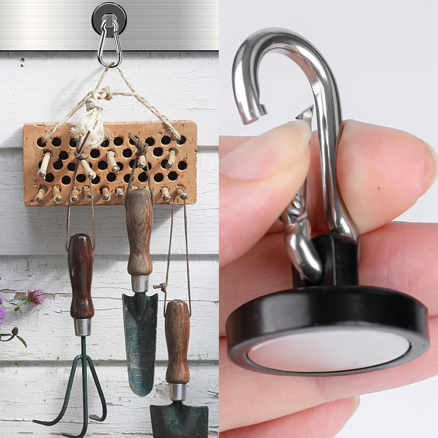 - STRONG MAGNETIC HOOKS: Our magnetic hooks with swivel carabiner hooks are made of neodymium magnets to ensure strong attraction. The holding capacity can reach 70 lbs vertically and 23 lbs horizontally, heavy duty magnetic hooks are suitable for hanging