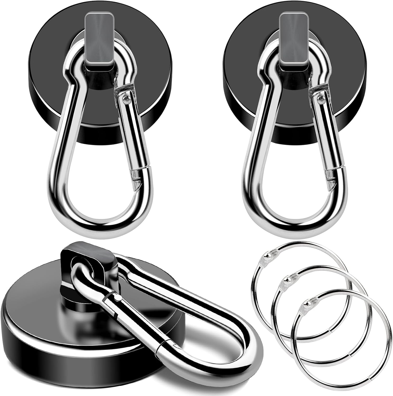 MIKEDE Strong Magnetic Hooks, 70LBS Magnetic Hooks Heavy Duty with Carabiner Hook, Strong Neodymium Magnets Hooks, Black Magnetic Hanger for Hanging, Kitchen, Grill, Locker, Cruise Ship Cabin - 3 Pack
