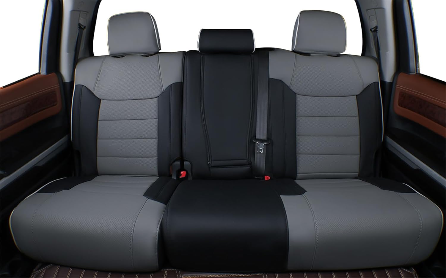 EKR Custom Fit Tacoma Rear Car Seat Covers for Select Toyota Tacoma (Petrol) 2024 2025 Double cab SR,SR5,TRD Sport,TRD Off-Road,Limited - Second Row Only,Leather (Black/Gray)
