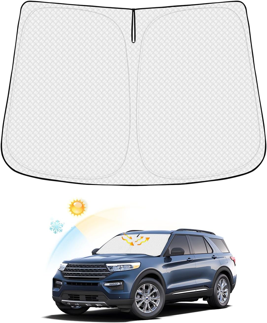 - 【Perfect Fit】Canvcle windshield sun shield fits perfectly for Ford Explorer 2020 2021 2022 2023 2024 2025 2026 front windshield without any gaps, don't worry about the size. Works well in keeping your car cooler, will be a must-have accessory for your car!
