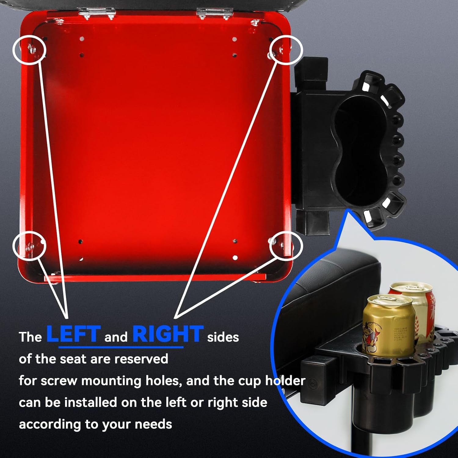 - 【Left-handed & right-handed Friendly】The left and right sides of the stool seat are reserved for screw mounting holes, and the CUP HOLDER can be installed on the left or right side according to your needs. The cup/tool holder has space for two beers or other tools. Do not have to get up as often to the garage beer fridge - saves steps and improves work efficiency
