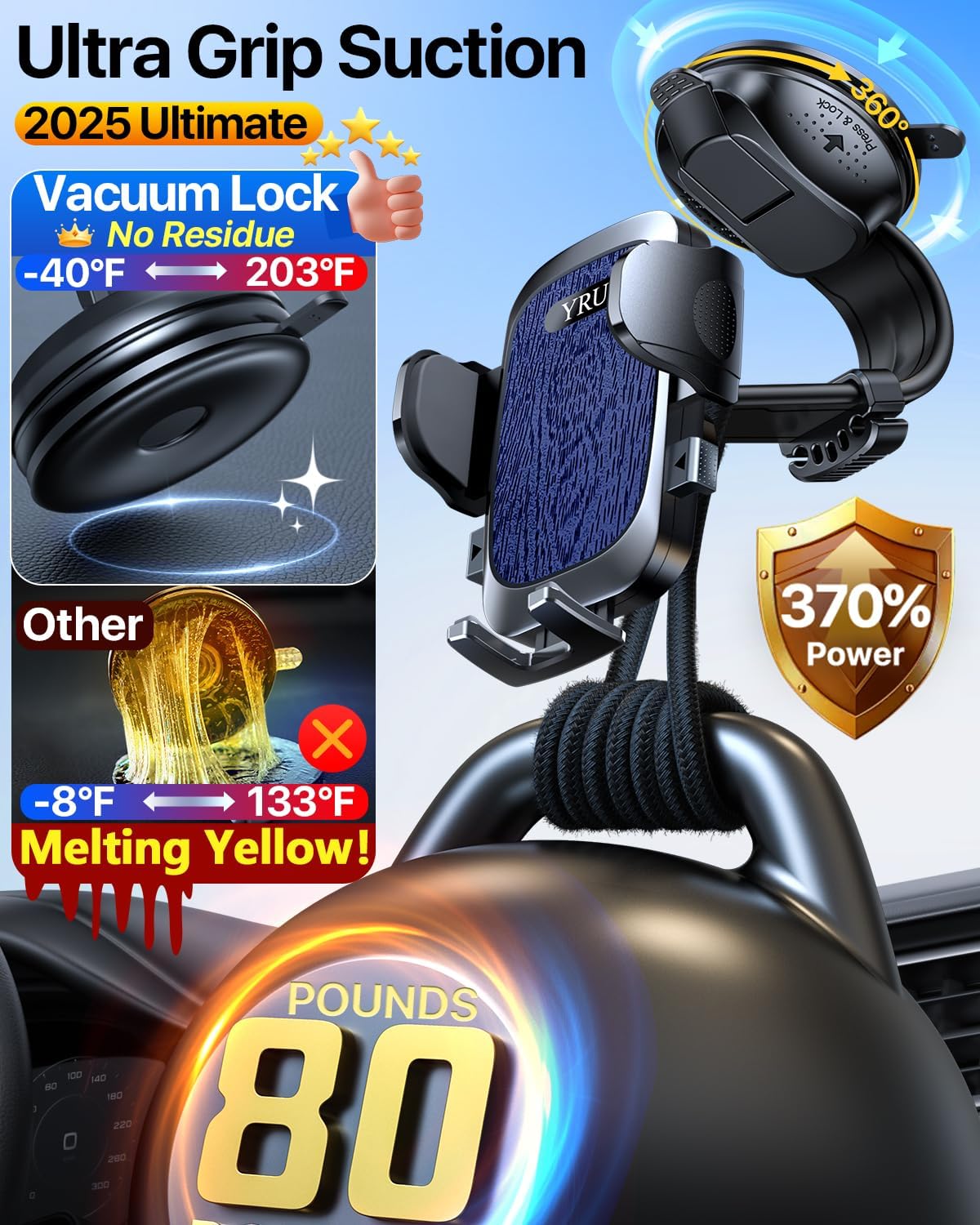 - 2025 Ultimate & High-End Car Holder, Trusted by 30,000+ Users: YRU 2025 upgraded car phone holder with 4 years of R&D passed 30,000+ users driving 900,000+ miles test, is a 3A-Grade reliable car mount, stable & durable. Got safely certified