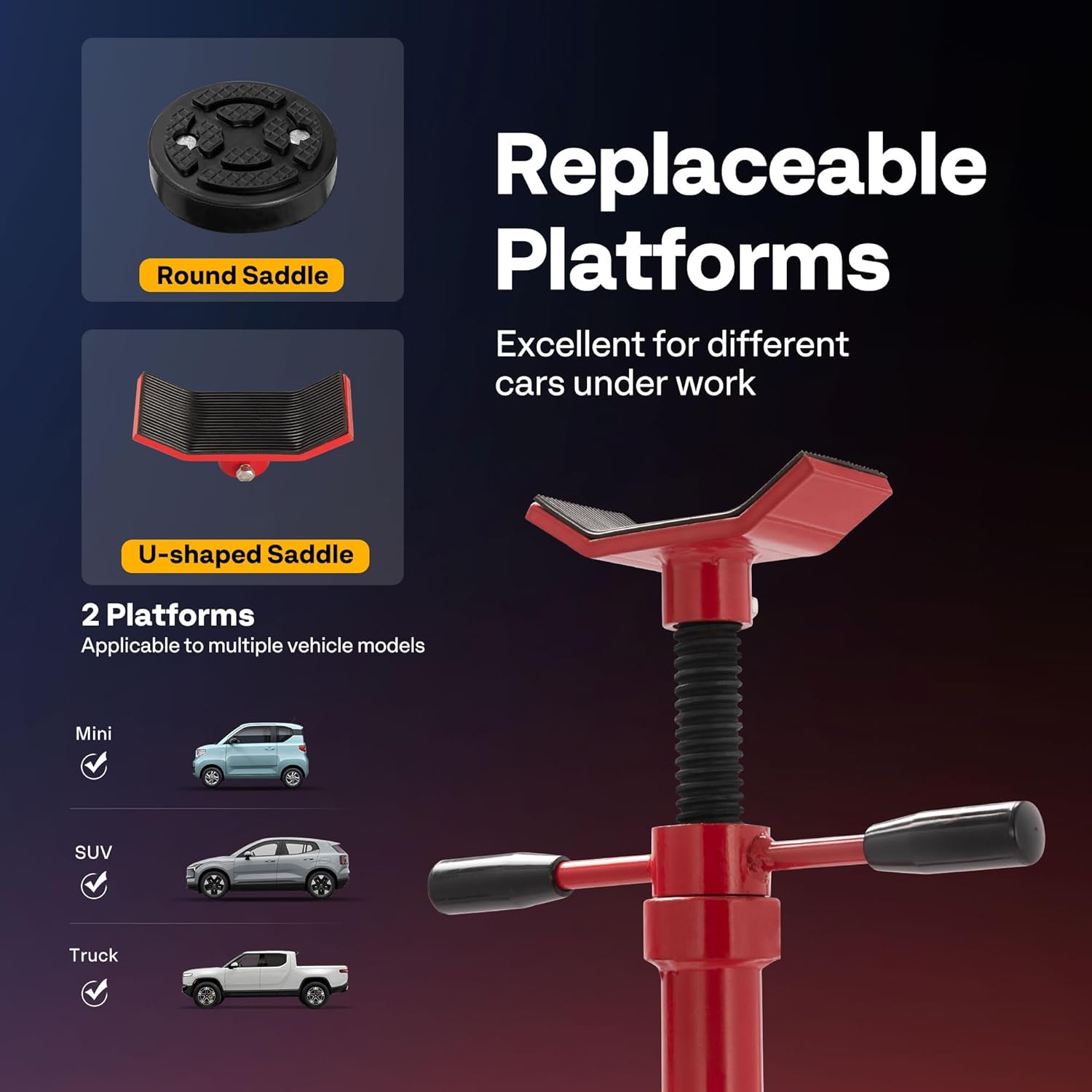 - VERSATILE & SPACE-EFFICIENT - Ideal for both professional mechanics and DIYers, this compact underhoist stand fits easily under most vehicles and is suitable for use in garages, workshops, or mobile repair scenarios; Perfect for supporting a variety of chassis types, it conveniently stores in tight spaces when not in use