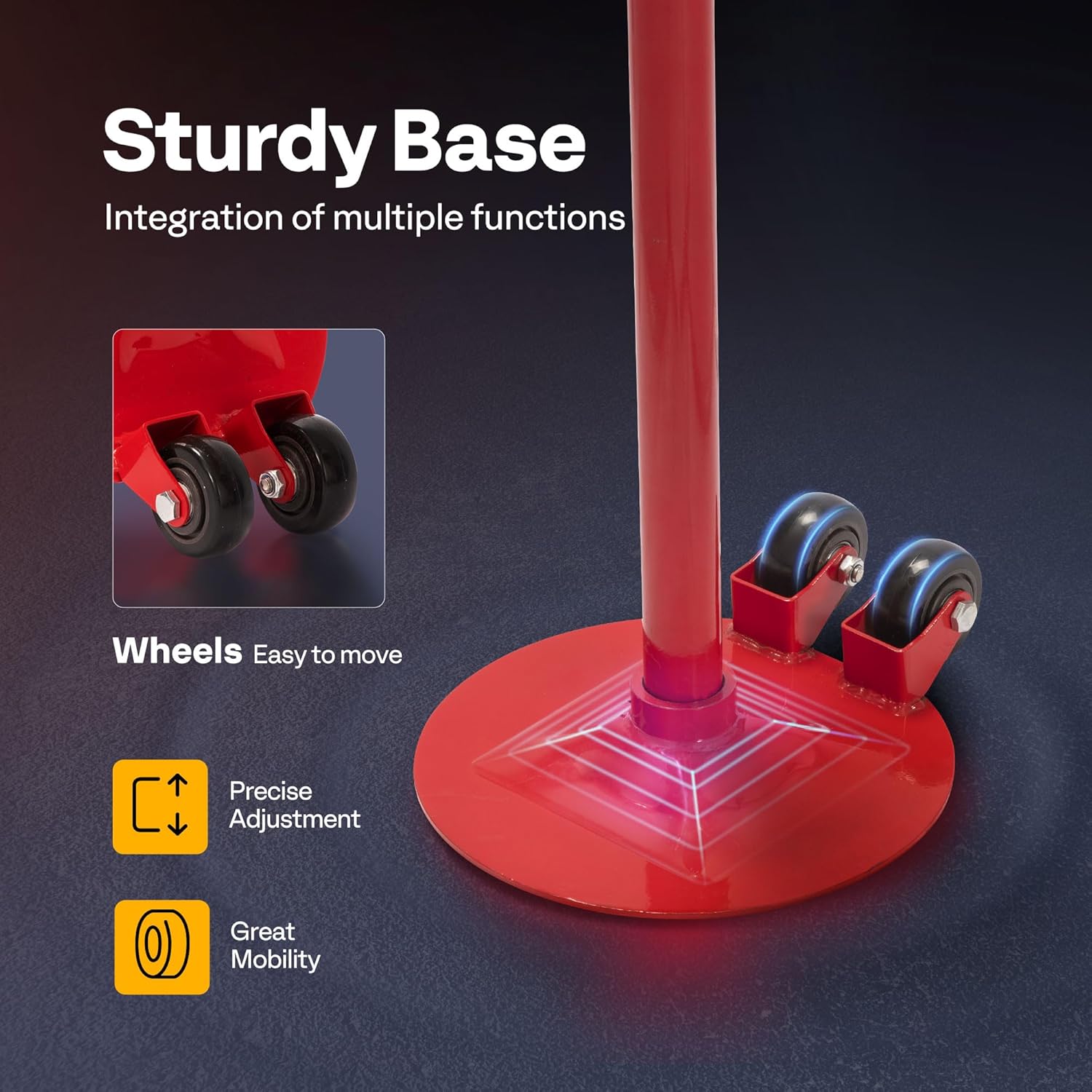 - STABLE BASE & MOBILE DESIGN - Featuring a wide 12-inch circular base for superior stability and reduced tipping risk; Integrated caster wheels provide easy transport and repositioning, while the U-shaped top saddle with a rubber pad delivers secure support and minimizes potential vehicle damage