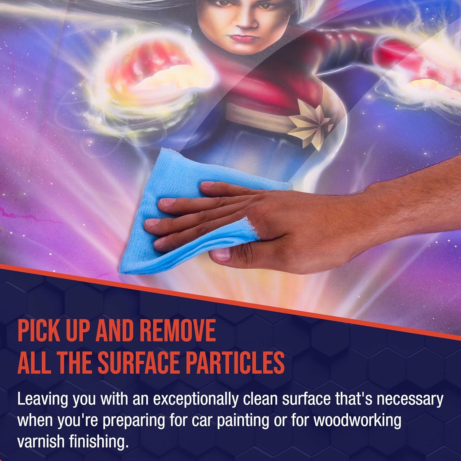 TCP Global - Pure Blue Superior Tack Cloths - Tack Rags (Box of 36) - Automotive Car Painters Professional Grade - Removes Dust, Sanding Particles, Cleans Surfaces - Wax and Silicone Free, Anti-Static