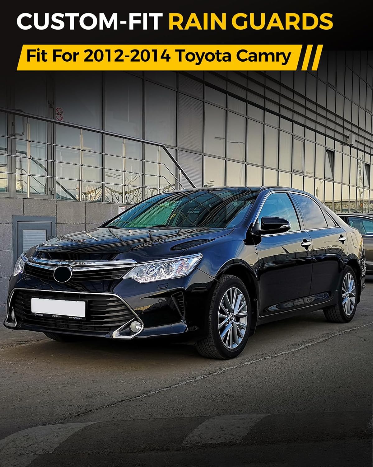 - 【Applicable Vehicles】The window visor is designed to fit your vehicle based on its year, brand, and model. These high-quality automotive window rain guards CUSTOM FIT only for 2012-2014 Toyota Camry.