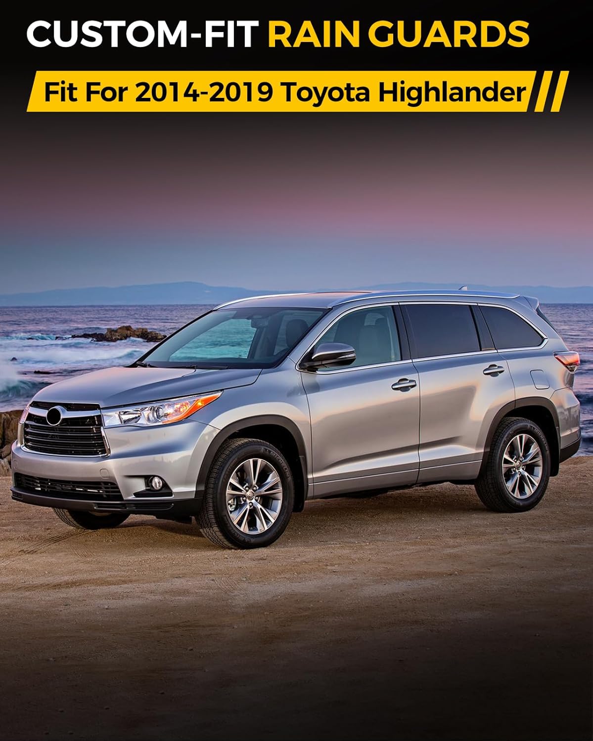 - 【Applicable Vehicles】The window visor is designed to fit your vehicle based on its year, brand, and model. These high-quality automotive window rain guards CUSTOM FIT only for 2014-2019 Toyota Highlander.