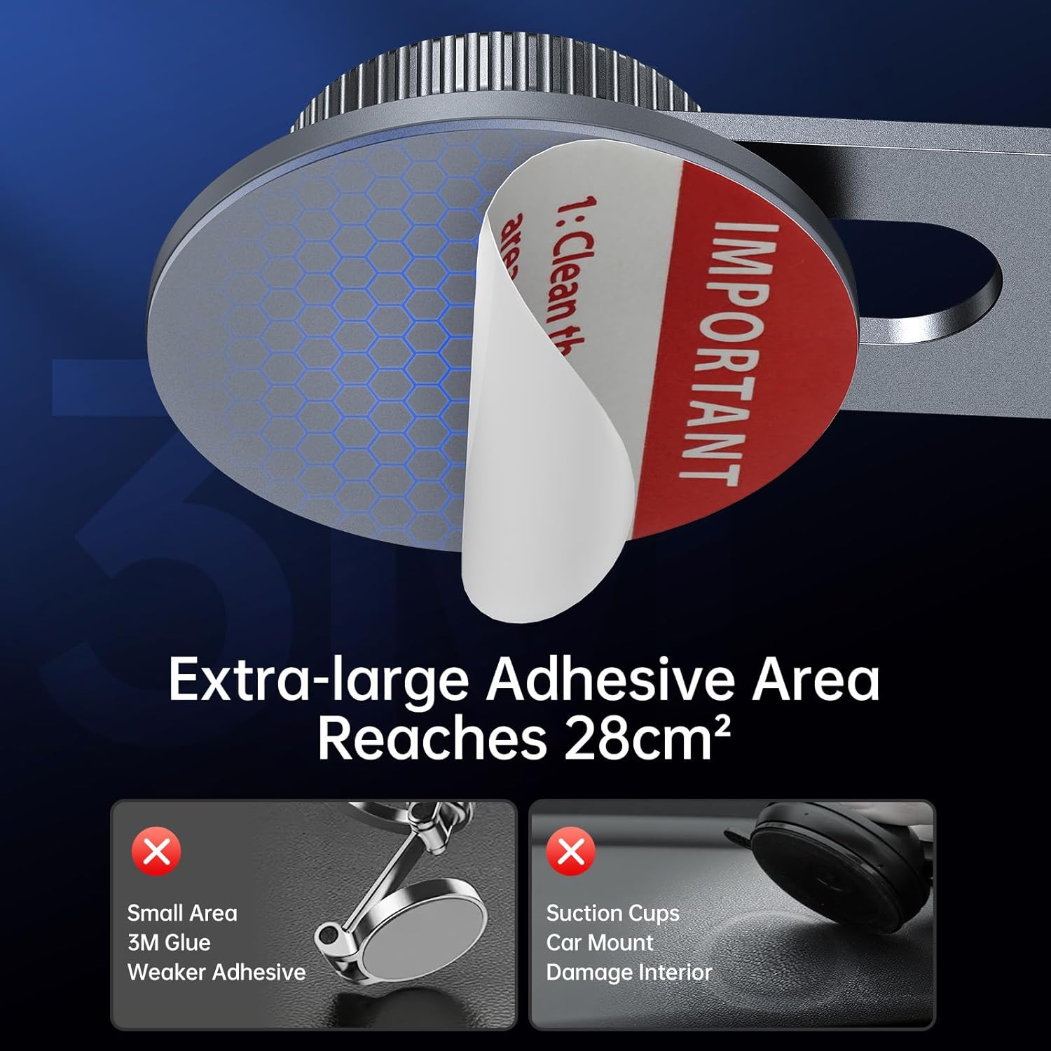 - ă Extra-large Adhesive Areaă3M VHB sticker reaches 28cm², which is 3 times more than other products, making the pasting more stable. It is less likely to damage the interior compared with these traditional suction cup competing products. The traditional suction cups will cause irreversible deformation and damage to the user's dashboard due to vacuum suction.