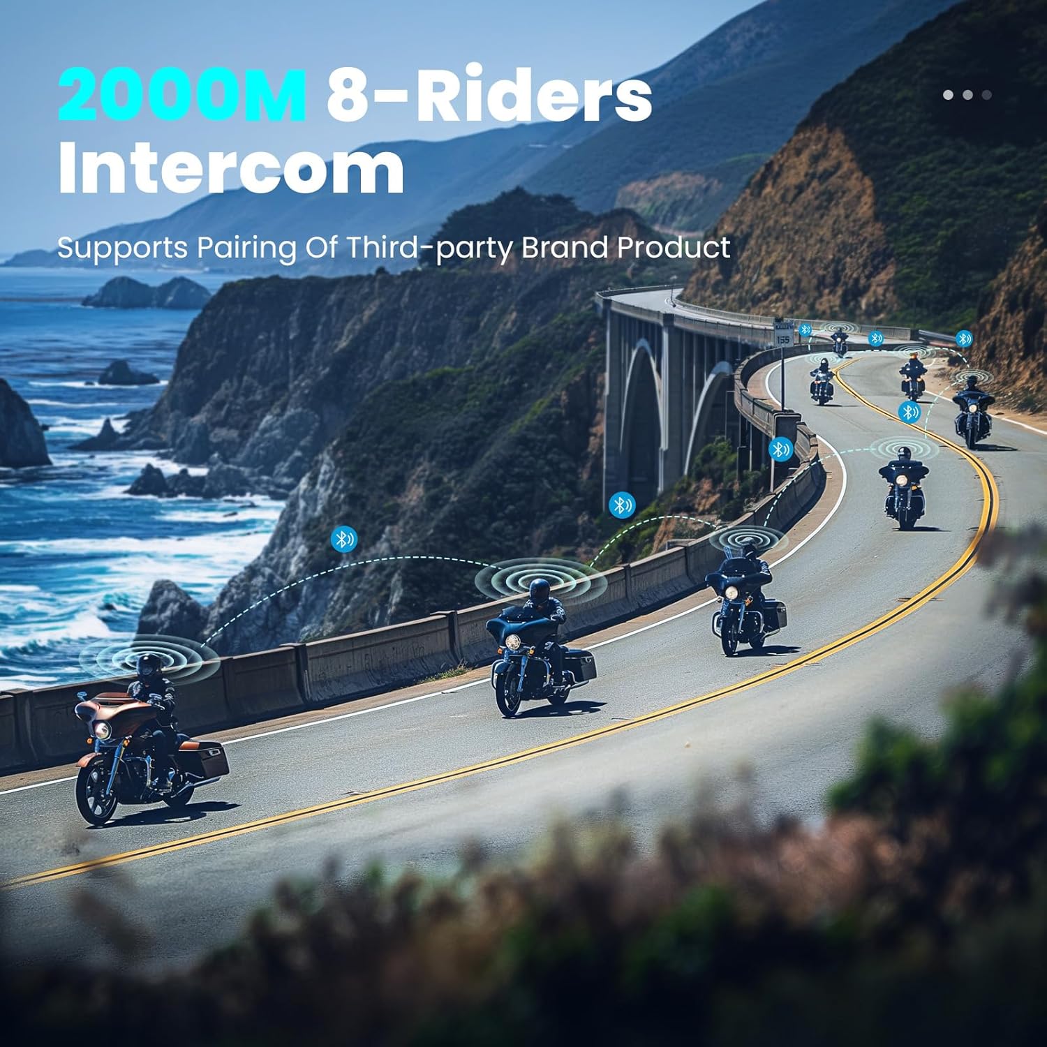 - 1000mAh Battery & Waterproof : This helmet bluetooth headset is equipped with a 1000mAh high-capacity battery, which can support uninterrupted talk time of 28 hours, music playback for 33 hours, and an ultra-long standby time of 550 hours with just a 2-hour quick charge. It is waterproof and dustproof, allowing for usage in any environment. It is undoubtedly the best companion for your long-distance rides!