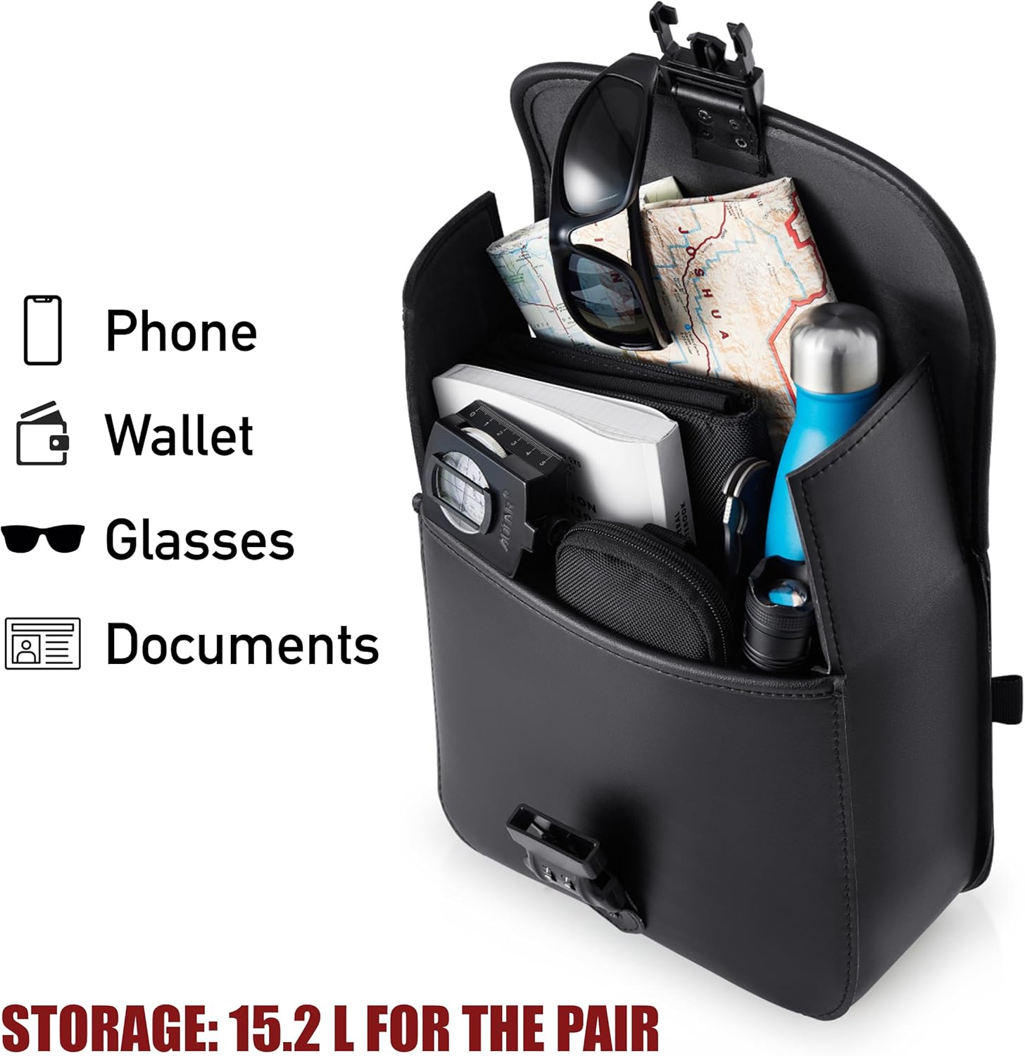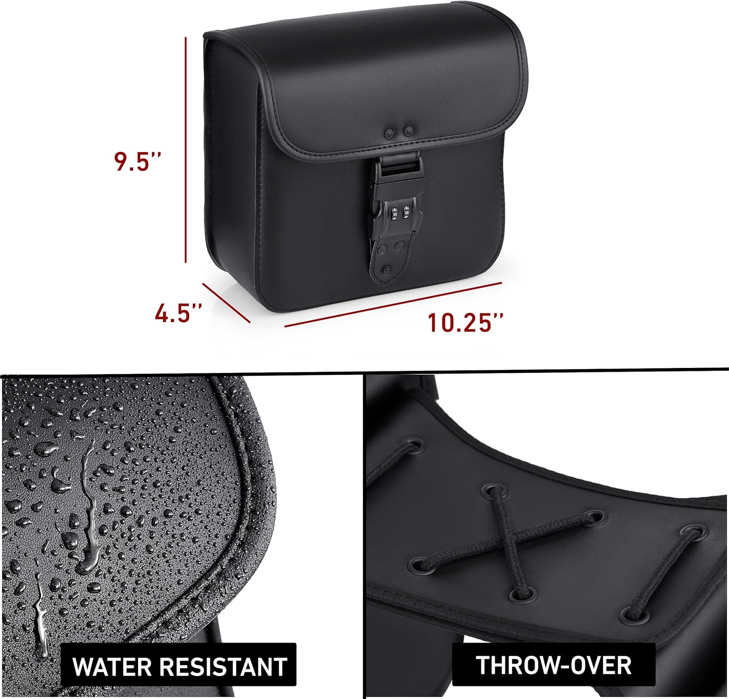 - Saddlebags Storage Capacity: With 7.4 liters of storage capacity, these throw over saddlebags keep your essentials close and organized while on the road. The cruiser motorcycle saddlebags measure 10.24β x 9.45β x 4.57β (L x W x H) and spacious saddlebags offer ample space to store items such as raincoats, water bottles, lighters, sunglasses, wallets, keys, phones, locks, food, and more. Enjoy the convenience of having your daily necessities within easy reach.