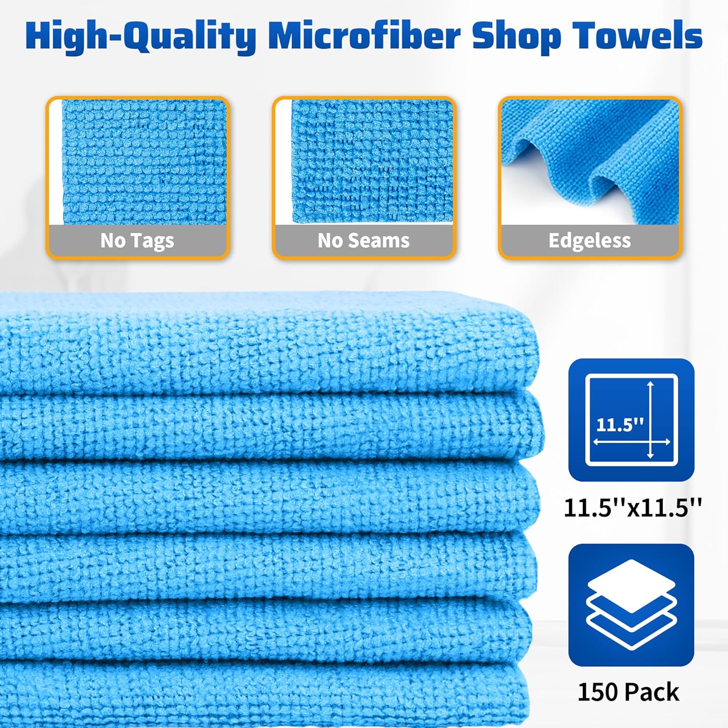 HOMERHYME Shop Towels, 150 Pack Cleaning Rags Microfiber Towels, Bulk All-Purpose Microfiber Cleaning Cloth Lint-Free Wipe Washcloth for Commercial Garage Automotive & Housekeeping 11.5"*11.5"