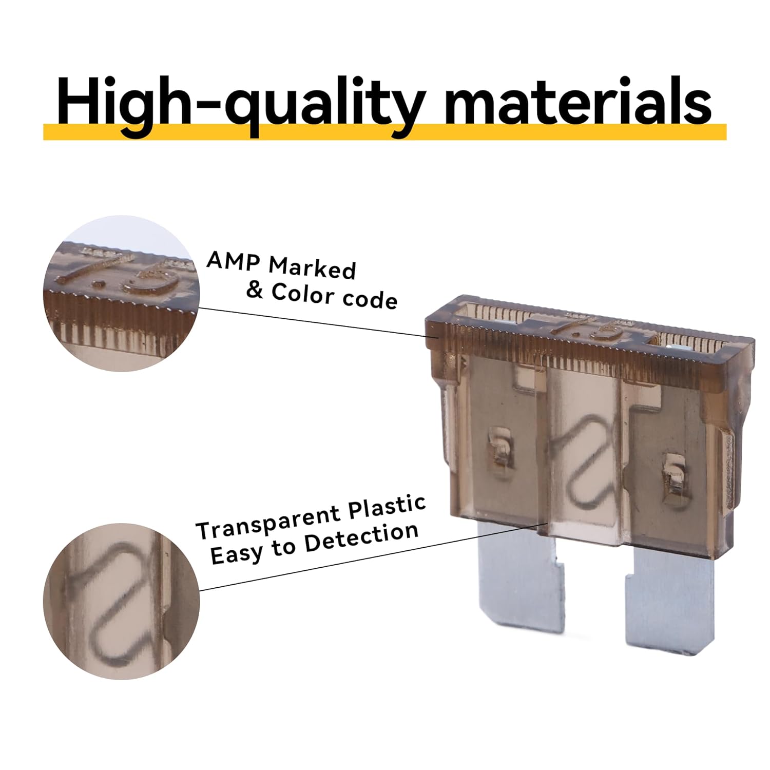 - CONVENIENT DETECTION - The plug-in blade fuses are made from transparent PES with zinc alloy inserts and transparent housings for viewing the fuse link status and quick detection of a blown fuse.