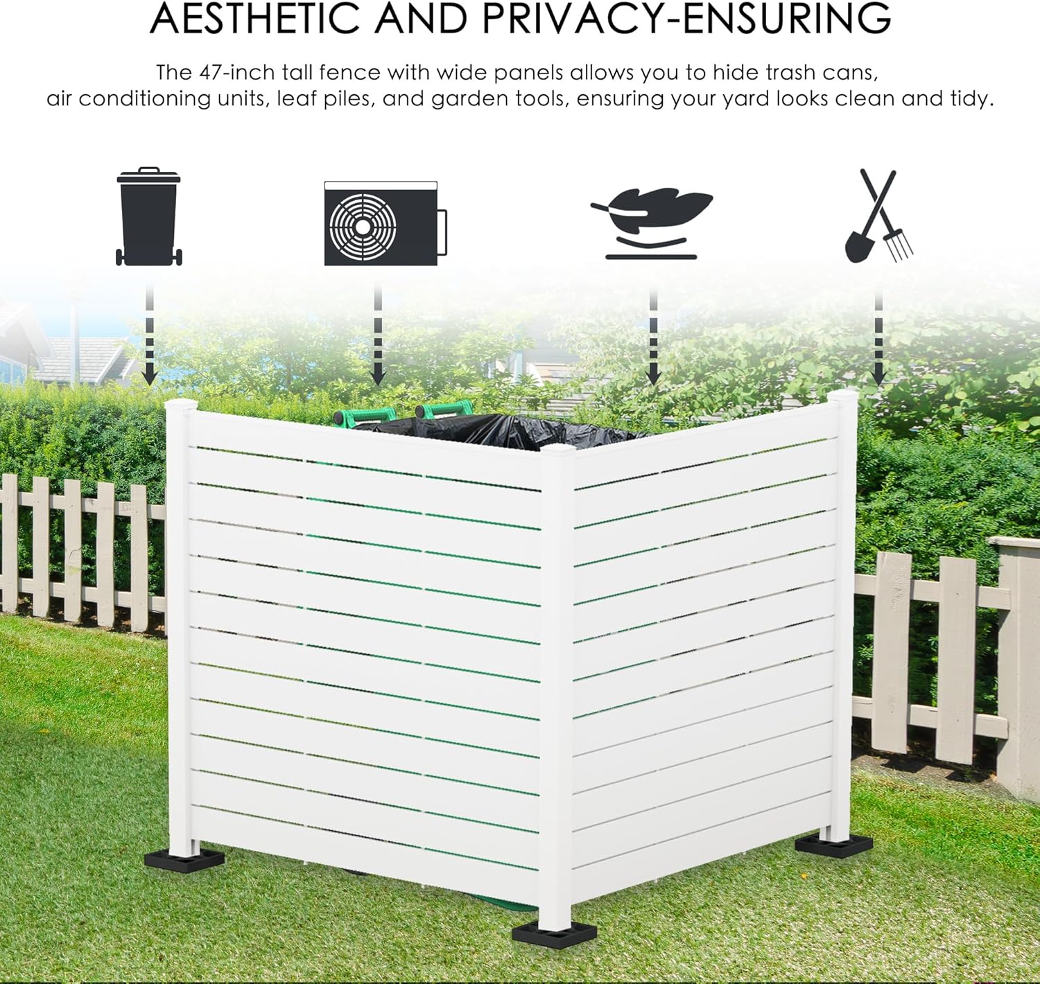 - π‘ Privacy Ensuring: Standing at 48 inches tall with wide panels, this fence effectively hides trash cans, air conditioning units, leaf piles, and garden tools, keeping unsightly items out of sight and ensuring your yard looks clean and tidy.