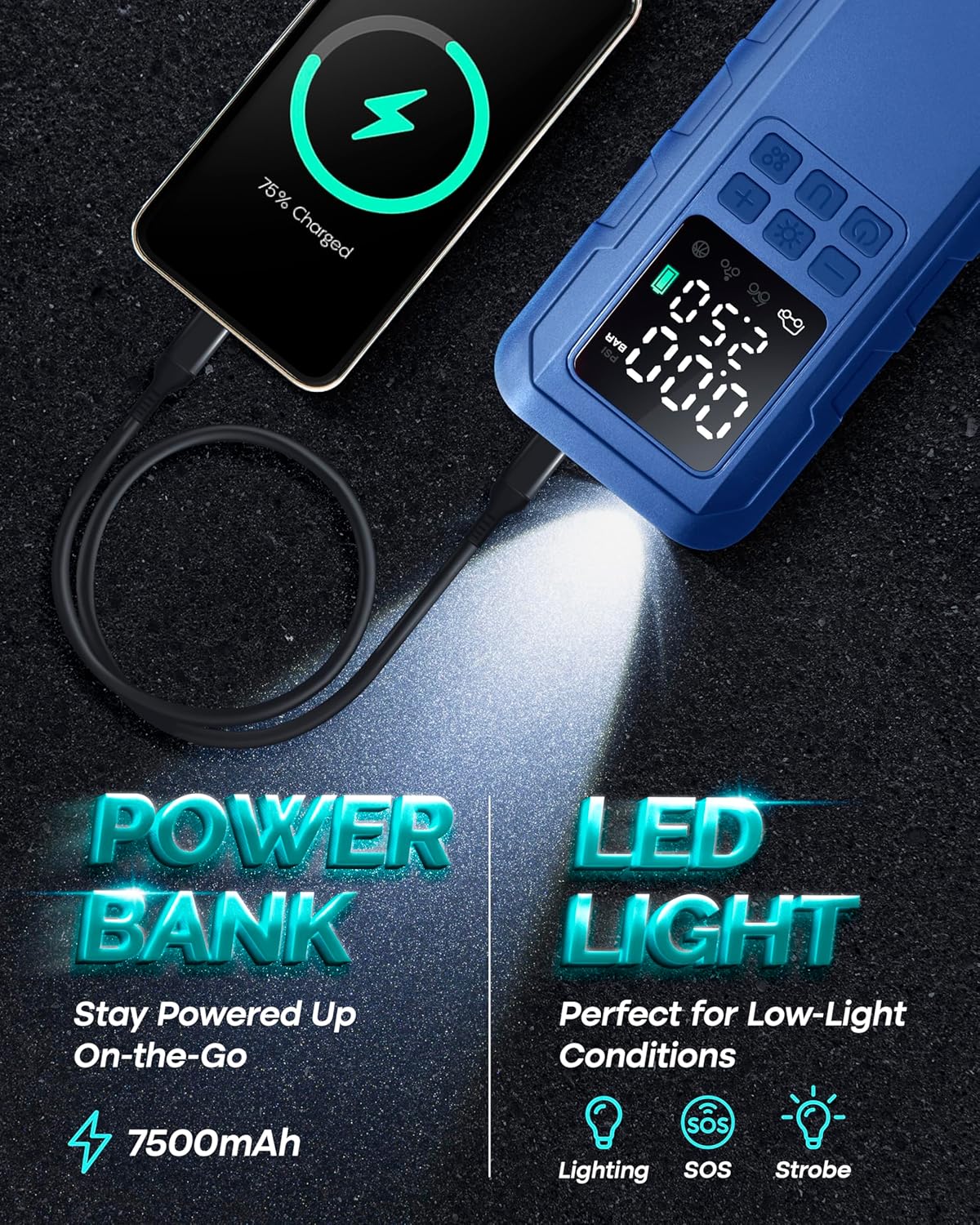 Tire Inflator Portable Air Compressor,150 PSI car tire air pump portable with Digital LCD Pressure Gauge,Electric Air Pump for Motorcycle Tires,Bicycle Tires and Balls,Blue