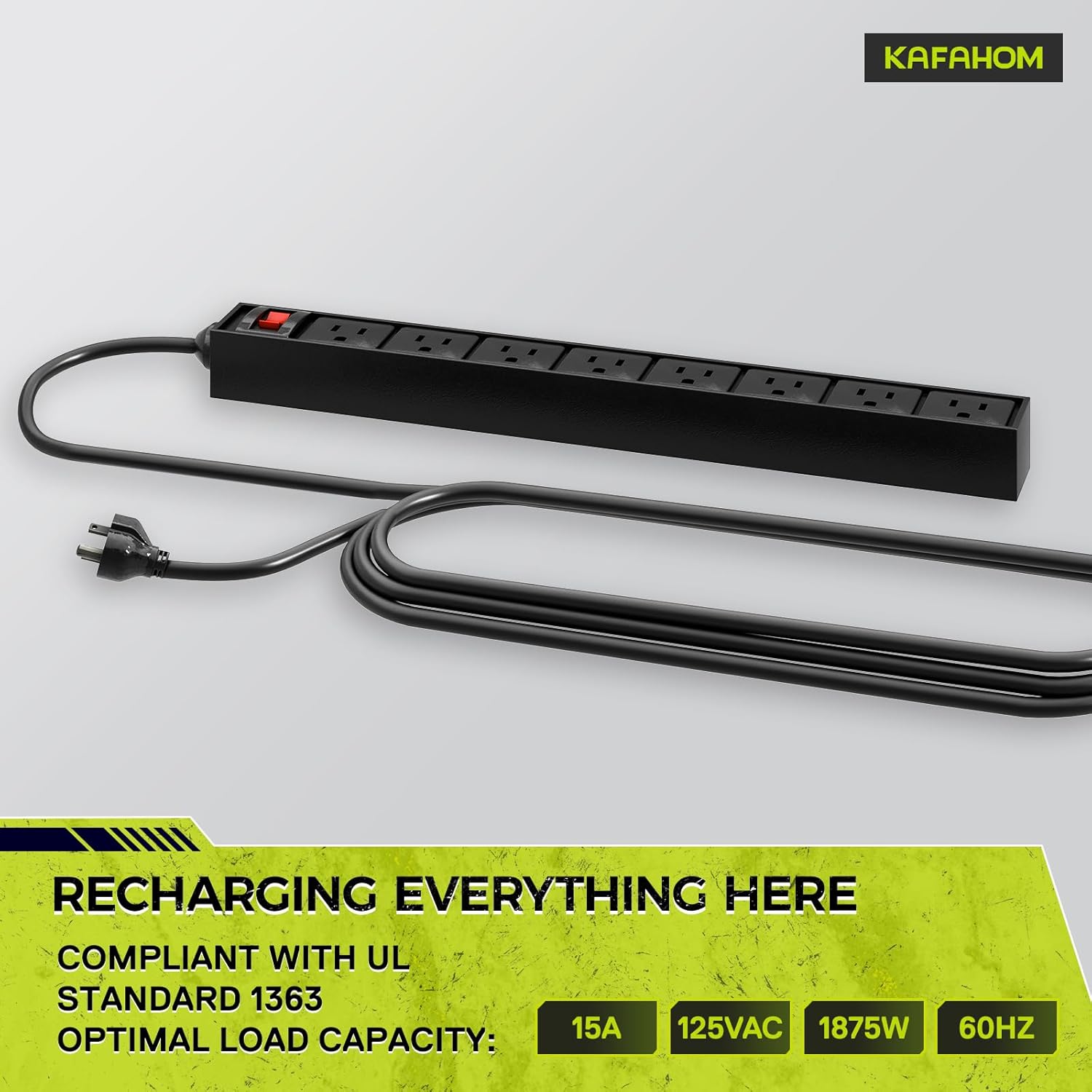 KAFAHOM Power Tool Organizer Cart with Charging Station,Garage Floor Rolling Storage on Wheels for Mechanic,Mobile 8 Drill Holder, Utility Cart with Battery Charging 8 Outlet Power Strip
