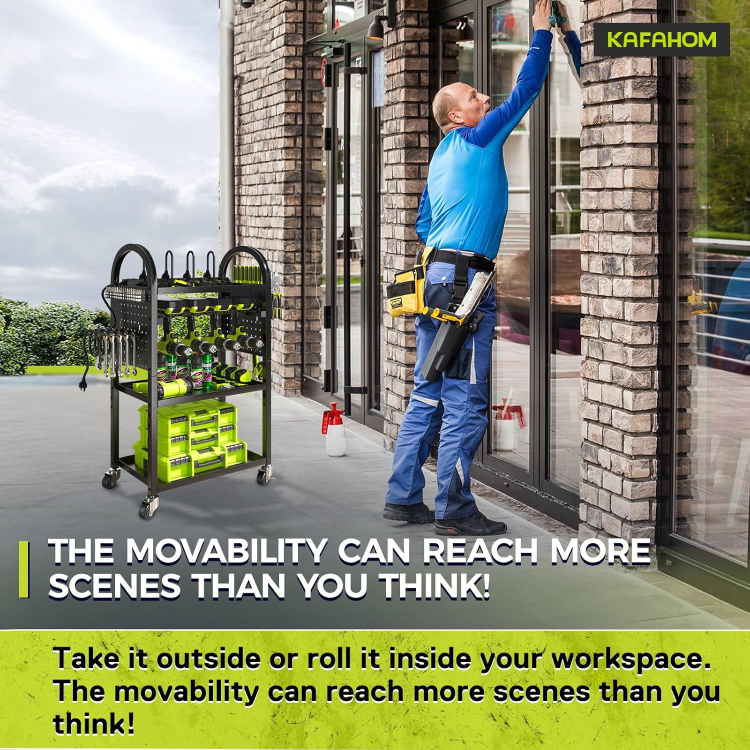 - Ultimate Mobility and Flexibility: The KAFAHOM 4 Layer Power Tool Storage Rack is designed for unparalleled convenience with four 360-degree swivel casters. These wheels allow for smooth and effortless movement across various surfaces. Each wheel is equipped with a lock mechanism, ensuring the rack remains stable and secure when stationary. Perfect for both indoor and outdoor use, it provides flexibility for any workspace.