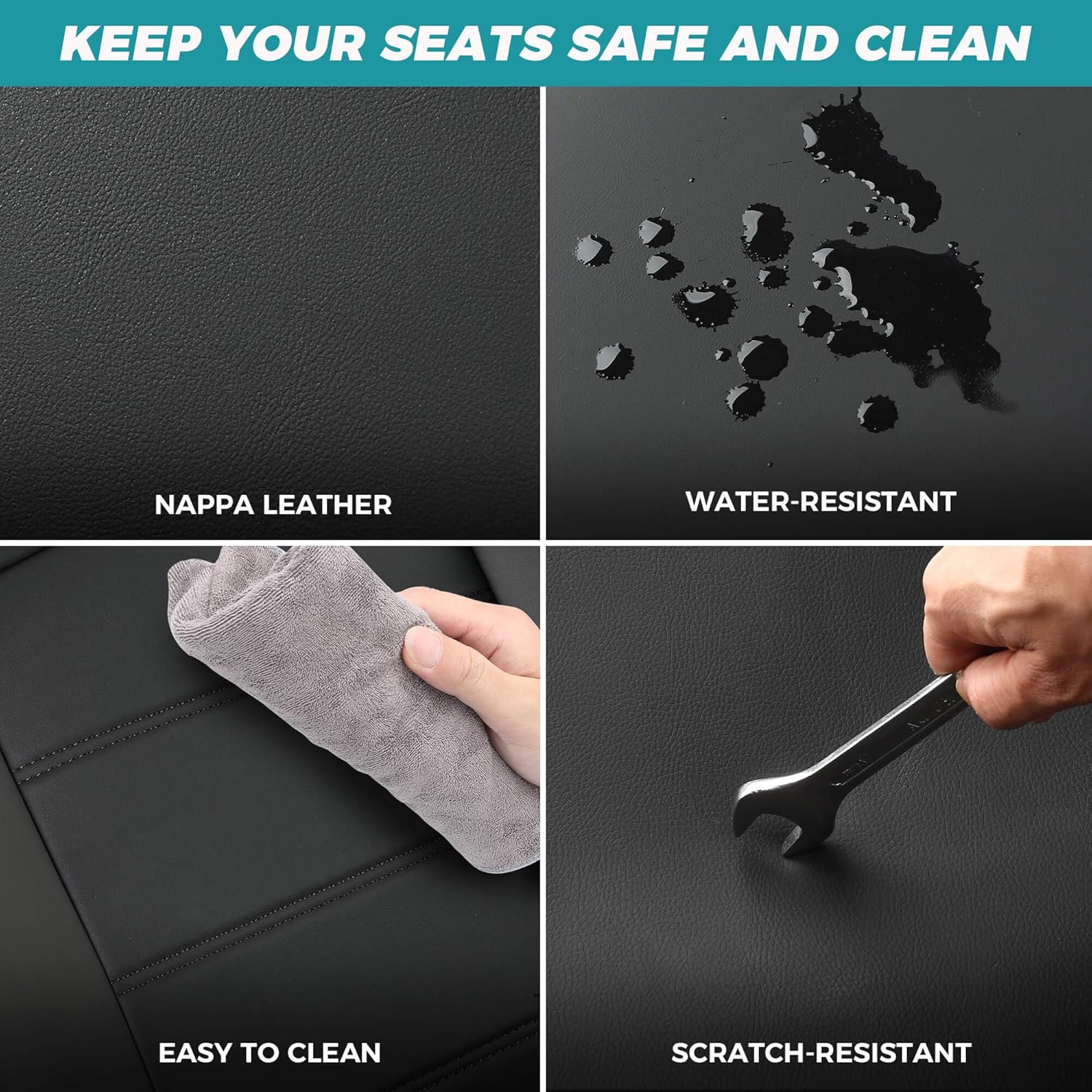 - Nappa Leather Seat Covers - The Nappa leather seat covers are soft, luxurious, and provide an excellent touch. They are durable, resistant to scratches, easy to clean, waterproof, and do not collect dust. They offer a comfortable driving experience and protect your seats. It's time to give your car a fresh look with a different colored set of seat covers.