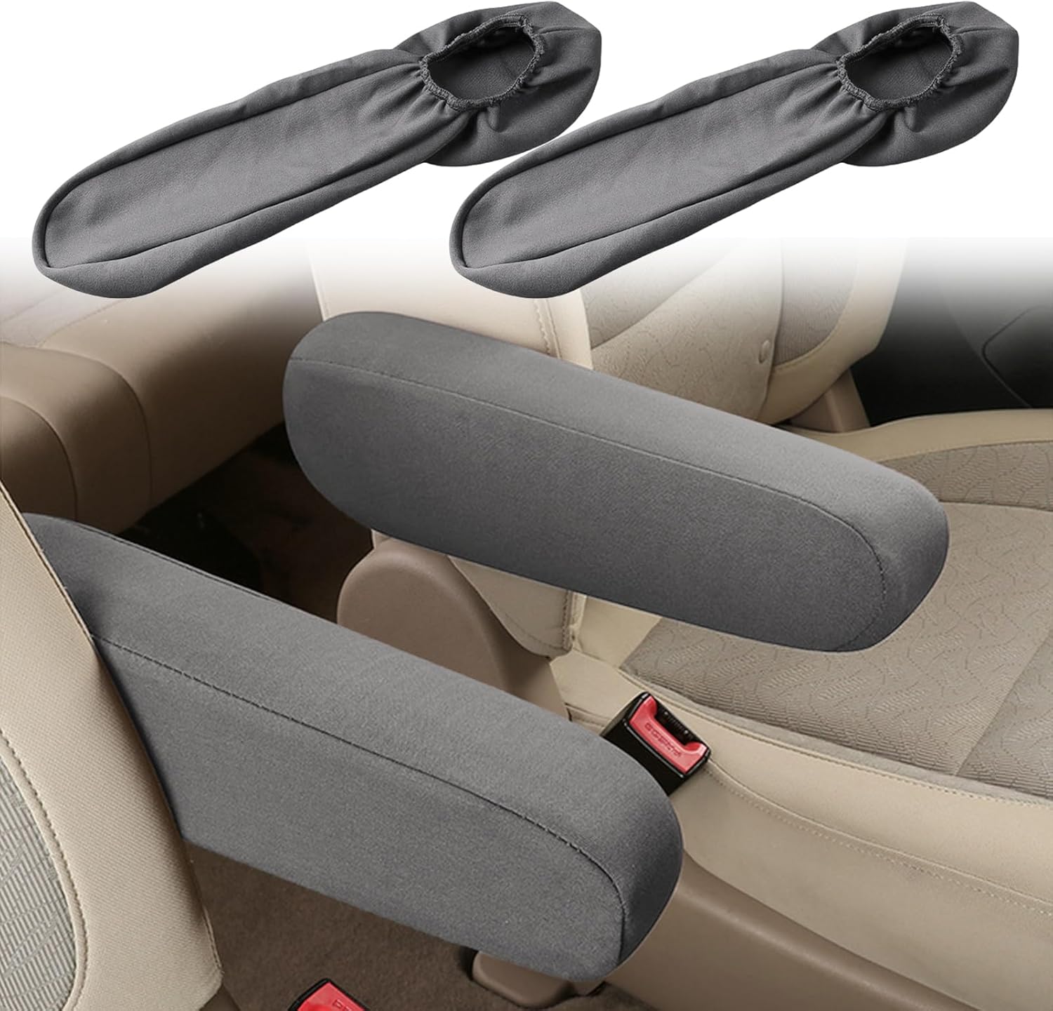 2PC Car Front Seat Armrest Covers,Universal Size Seat Arm Rest Cover,Flat Cloth Fabric Armrest Cover,Car Interior Accessories(Gray,1Pair)